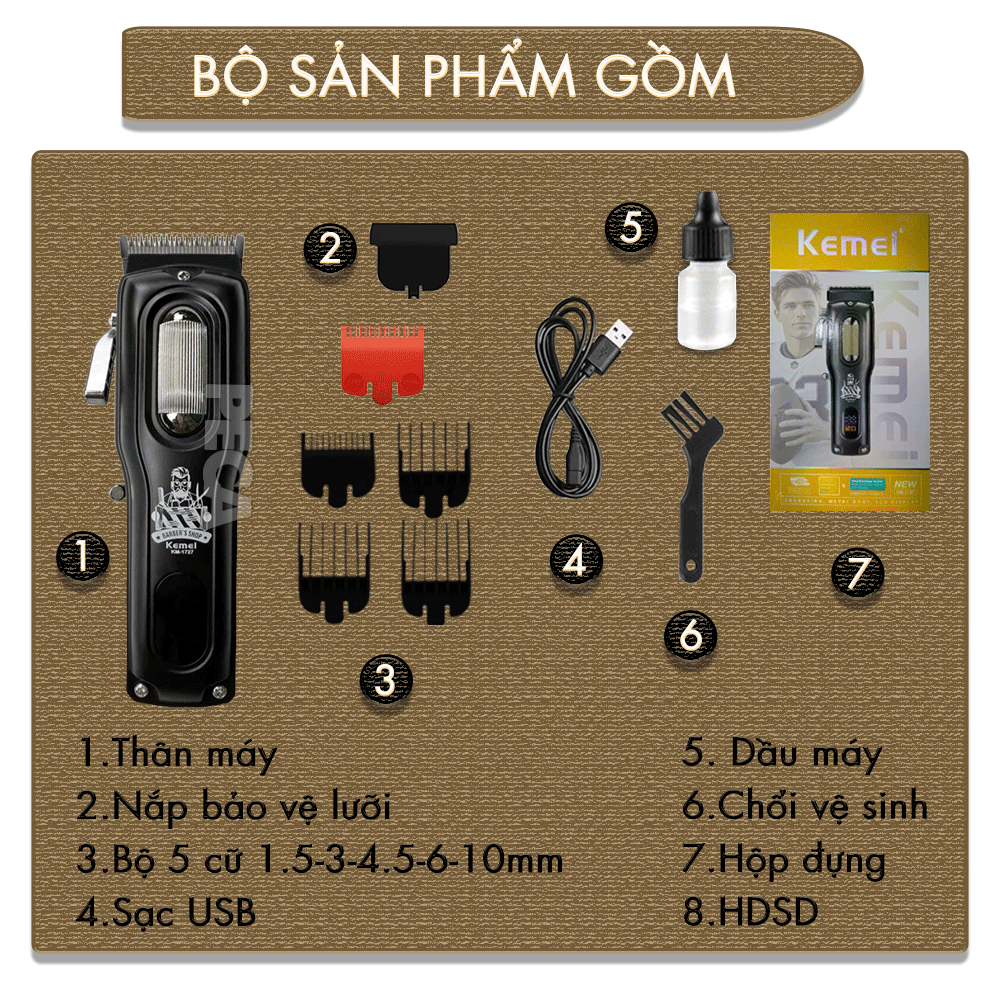 TÔNG ĐƠ CẮT TÓC CHUYÊN NGHIỆP KEMEI KM-1727 CÔNG SUẤT SIÊU MẠNH 8W