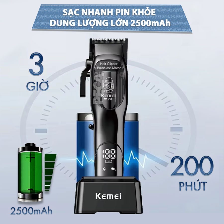 ✨Tông đơ cắt tóc chuyên nghiệp Kemei KM-1766 lưỡi cắt mạ carbon DLC cao cấp có động cơ không chổi than màn hình LCD hiển thị công suất 5W - Chính hãng