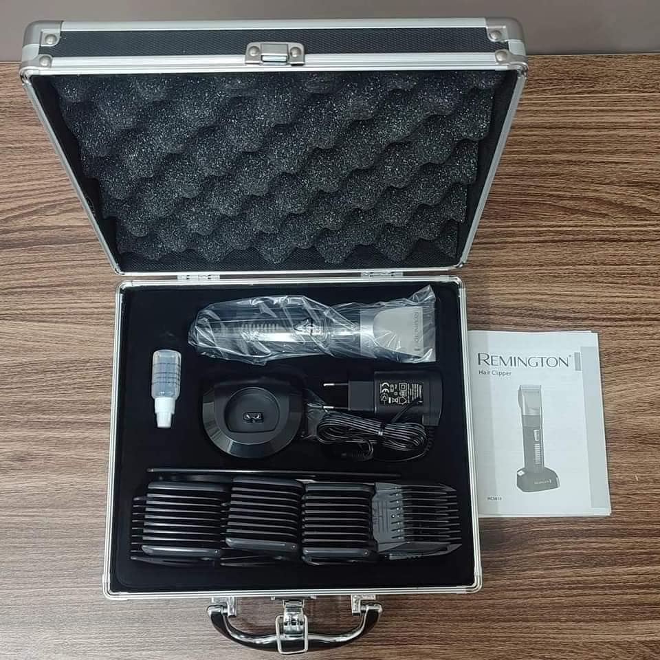 Mua tại TiktokBộ tông đơ cắt tóc Remington HC5810 có các lưỡi dao gốm tự mài tinh xảo cho hiệu suất cắt chuyên nghiệp. 10 lược đính kèm (3 - 40 mm), đèn LED báo trạng thái pin, tay cầm chống trượt, trạm sạc. Cài đặt độ dài chính xác để cắt tóc chính xác (0,8-2 mm). Hoạt động chính là pin, chạy bằng lithium cho thời gian hoạt động lên đến 50 phút, thời gian sạc 90 phút. Hộp nhôm chuyên nghiệp được trang bị kéo, lược, lược chải và chai dầu.