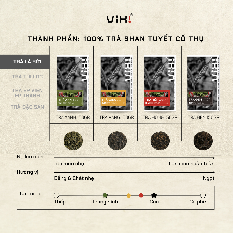Trà xanh ViXi trà Shan Tuyết cổ thụ lá rời 1 búp 2 lá 220gr - 500gr Trà xanh Shan Tuyết cổ thụ ViXi được chọn lọc từ vùng trà Shan tuyết – nơi các cây trà cổ thụ lên tới 300-400 tuổi.THÔNG TIN CHI ...