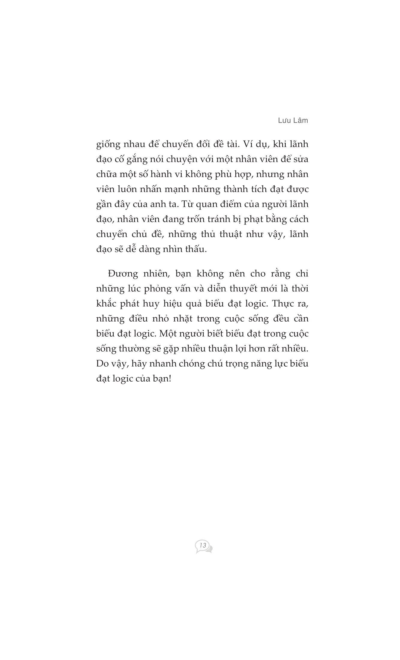 Khi giao tiếp và truyền đạt suy nghĩ của bạn với người khác, nếu không có tính logic, lời nói của bạn sẽ là chướng ngại vật cản trở giao tiếp giữa hai bên. Những mối quan hệ giữa các cá nhân phức tạp của xã hội hiện đại, cuộc sống và công việc nhịp độ nhanh đòi hỏi chúng ta phải có một "lời nói logic" thông minh hơn, sắc sảo hơn.