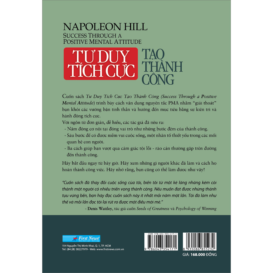 Tư Duy Tích Cực Tạo Thành Công (Tái Bản) (Success Through a Positive Mental Attitude) trình bày cách vận dụng nguyên tắc PMA nhằm "giải thoát" bạn khỏi các vướng bận tinh thần và hướng đến mục tiêu bằng sự kiên trì và hành động tích cực.