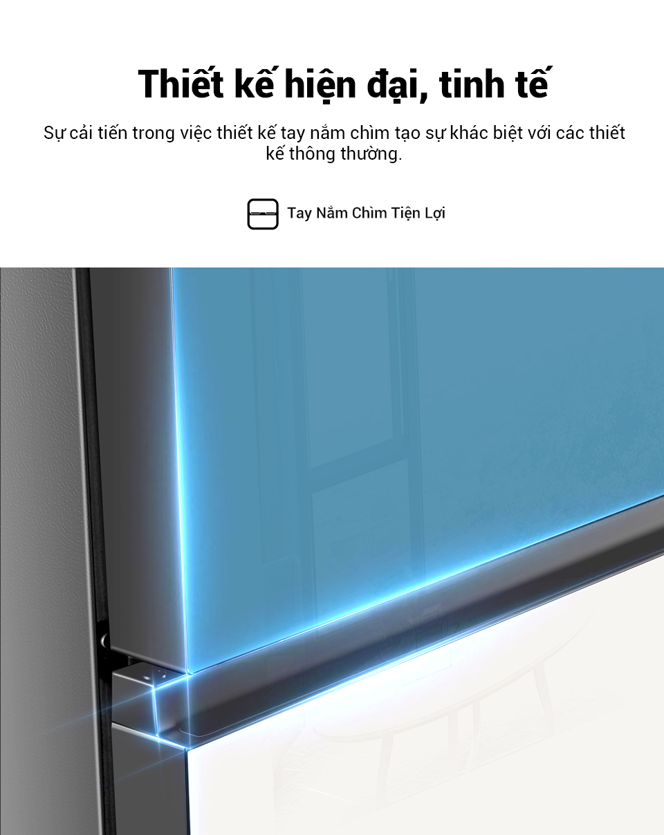 - Đèn LED Dịu Nhẹ, Luôn Sáng Rõ, Luôn Trong Tầm Mắt: Hệ thống đèn LED được thiết kế để chiếu sáng tới mọi ngóc ngách bên trong tủ lạnh, giúp bạn dễ dàng nhìn thấy đồ mà bạn cần. Ánh sáng không chói mắt và dịu nhẹ nhưng vẫn giúp bạn dễ dàng tìm thấy bất cứ thứ gì bạn đang tìm kiếm.
