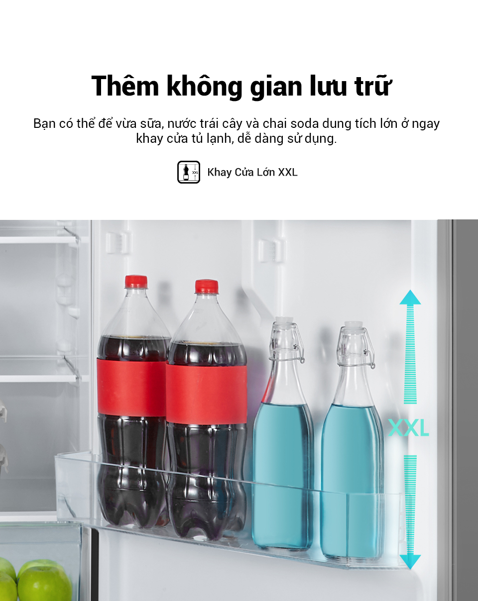 - Khay Cửa Có Thể Dịch Chuyển: Thật dễ dàng để thay đổi chiều cao và vị trí khay đựng theo ý muốn. Điều đó thực sự hữu ích khi bạn cần bảo quản những chai lọ cao hoặc những thực phẩm có kich thước lớn.
