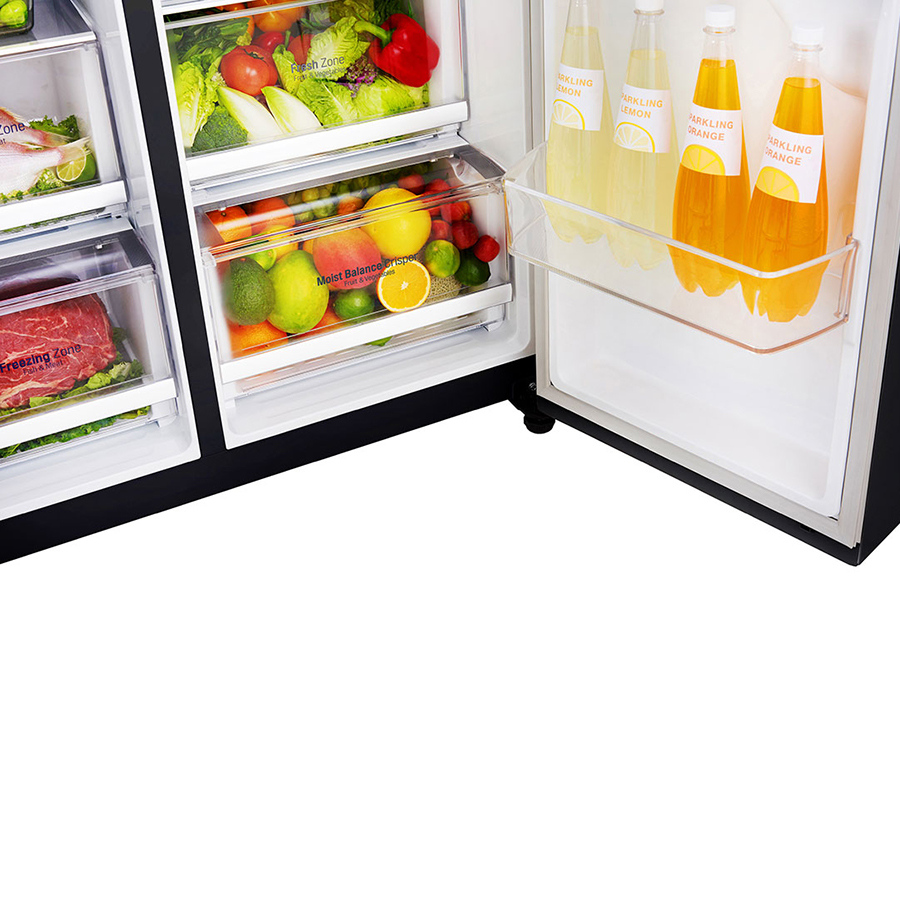 Đặc điểm nổi bật - Tủ lạnh Side by Side 641 lít thích hợp cho gia đình trên 5 thành viên. - Ngăn lấy nước và đá ngoài tiện lợi, tránh mở cửa nhiều lần thất thoát hơi lạnh. - Công nghệ làm lạnh LINEARCooling duy trì nhiệt độ ổn định. - Luồng khí lạnh đa chiều Multi Air Flow đem lại hiệu suất làm lạnh nhanh, đều hơn. - Bộ lọc than hoạt tính khử mùi hiệu quả, giúp không khí trong tủ luôn sạch sẽ. Tổng quan - Kiểu tủ:Tủ lớn - Side by Side - 2 cánh - Dung tích sử dụng:641 lít - Trên 5 người - Dung tích tổng:677 lít - Dung tích ngăn đá:221 lít - Dung tích ngăn lạnh:420 lít - Chất liệu cửa tủ lạnh:Kim loại - Chất liệu khay ngăn lạnh:Kính cường lực - Chất liệu ống dẫn gas, dàn lạnh:Ống dẫn gas bằng Nhôm - Lá tản nhiệt bằng Nhôm - Năm ra mắt:2024 - Sản xuất tại:Trung Quốc Mức tiêu thụ điện năng - Công suất tiêu thụ công bố theo TCVN:624 kWh/năm