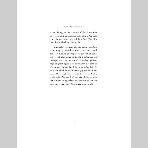 As a man thinketh – Từ vô minh đến tỉnh thức là tuyển tập những tác phẩm nổi tiếng nhất của triết gia thiên tài người Anh – James Allen. Cuốn sách này là những dòng suy ngẫm của tác giả về bản chất con người, với tư cách là một cá thể độc lập cũng như một thành viên của xã hội. Thế giới bên ngoài, rực rỡ, đẹp đẽ hay tăm tối xấu xa, hoàn toàn phụ thuộc vào cách ta nuôi dưỡng thế giới nội tâm của mình. Trong hành trình vun xới cho khu vườn tâm trí ấy, liệu ta có biếng lười mà thả mình theo những cám dỗ ngọt ngào hiểm ác, hay sẽ can đảm lựa chọn một con đường dẫu gian lao nhưng lương thiện, trong sáng và được ban phước lành?