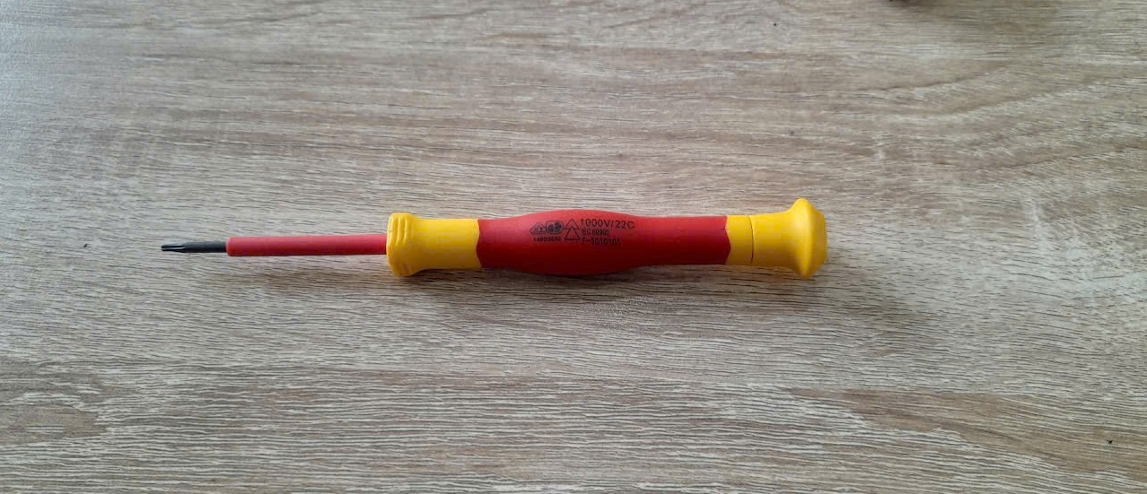 English name:Screwdriver SoftFinish electric Tiêu chuẩnĐược thử nghiệm theo IEC 60900.Ứng dụng Đối với công việc trong khu vực của các bộ phận sống lên đến 1.000 V AC. Size: 2,5 mm Chiều dài: 179