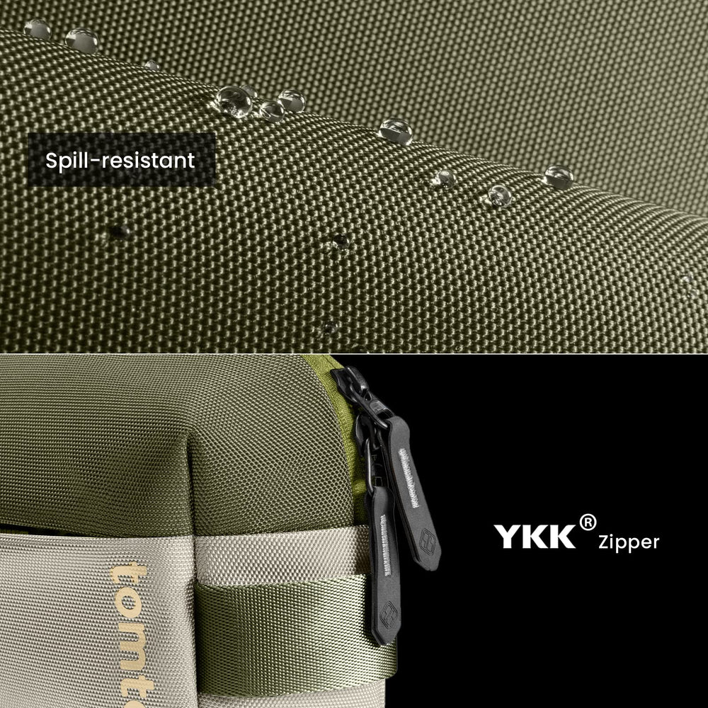 Bên ngoài được làm bằng Cordura Ballistic Nylon. Cực kỳ chắc chắn, nhẹ và chống nước với độ bền cao. Khóa kéo YKK để sử dụng an toàn và lâu dài.