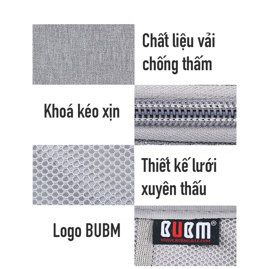 Túi phụ kiện công nghệ BUBM chuyên dụng 1 ngăn, 2 ngăn đựng dây cáp, pin sạc dự phòng có quai xách cầm tay tiện lợi
