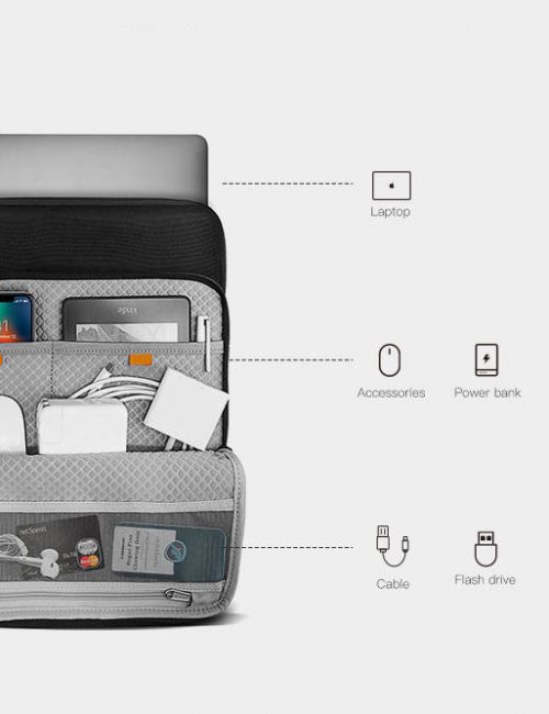 - Bên ngoài túi trang bị thêm một ngăn lớn mở rộng và các ngăn nhỏ để sạc, calbe, tai nghe tiện lợi khi di chuyển.