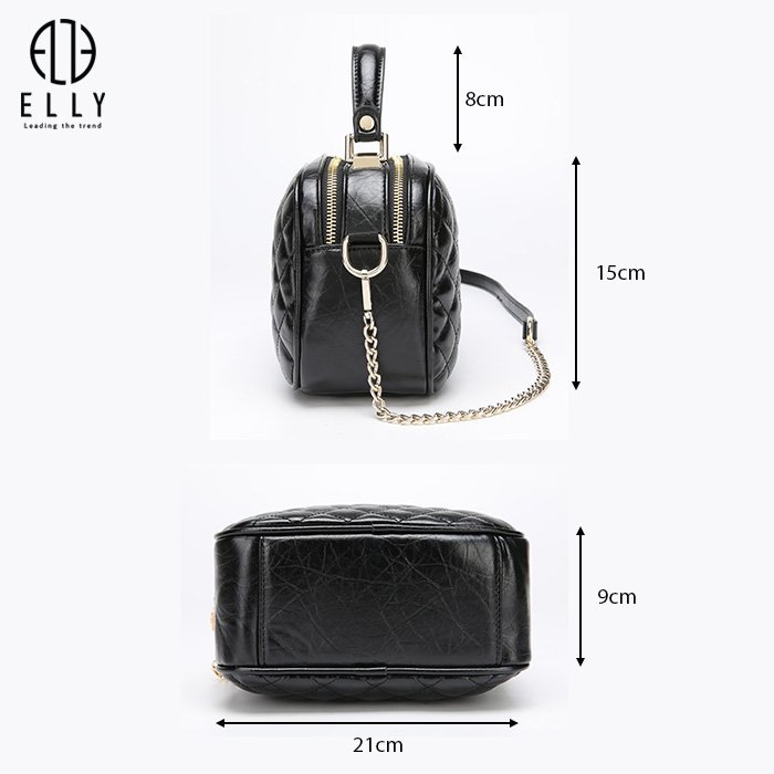 Mua tại Tiktok– Thương hiệu: ELLY. – Sản xuất: Trung Quốc (theo tiêu chuẩn chất lượng của thương hiệu ELLY). – Màu sắc: Đen. – Kích thước: 21 x 15 x 9 (Chiều ngang x chiều dọc x độ dày). – Chất liệu: Da tổng hợp cao cấp. – Kiểu dáng: Túi xách tay, đeo vai. – Công năng: Đựng điện thoại, ví, son, đồ dùng cá nhân,… – Bảo hành: 03 tháng (với lỗi do sản xuất).