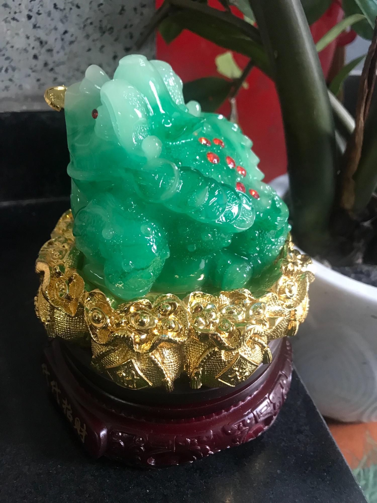 ✨Tượng Cóc Thiềm Thừ Xanh Ngọc Sáng Đẹp Ngậm Tiền Trên Hủ Tiền Thỏi Vàng Đế Gỗ Xoay Size Cao 17cm đk 14cm hợp mệnh mộc mệnh hỏa anh chị để bàn làm việc hay bàn thờ thần tài ạ