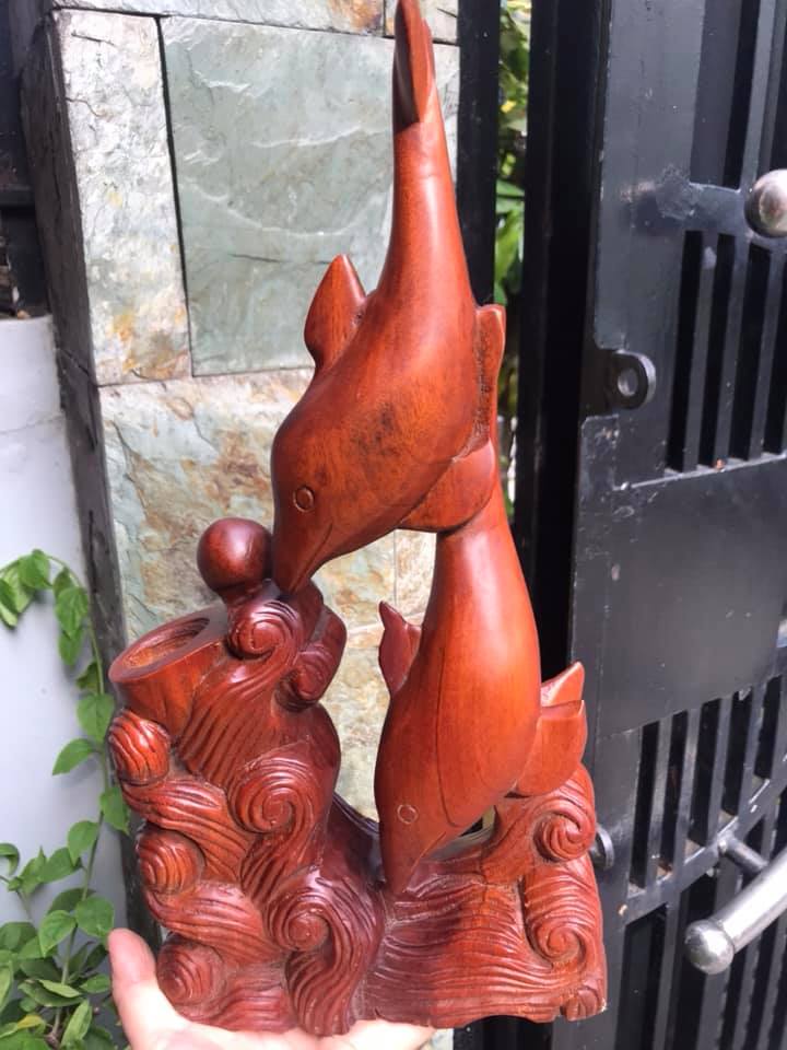 ✨Tượng Gỗ Ống Đựng Bút Gỗ Gõ Chạm Hình 2 Con Cá Heo May Mắn TRANG TRÍ VÀ ĐỂ BÚT XINH LẮM cao 36cm x ngang 18cm x sâu 7cm đẹp lạ CÁ HEO BIỂU TƯỢNG SỰ MAY MẮN ạ