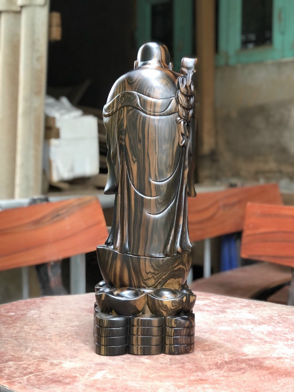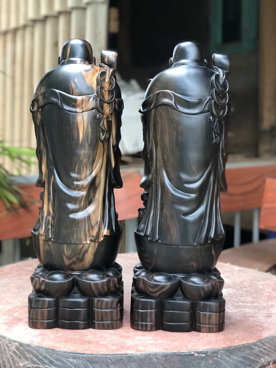 ✨Tượng phật di lặc chúc phúc bằng gỗ mun kt cao 60×20×15cm