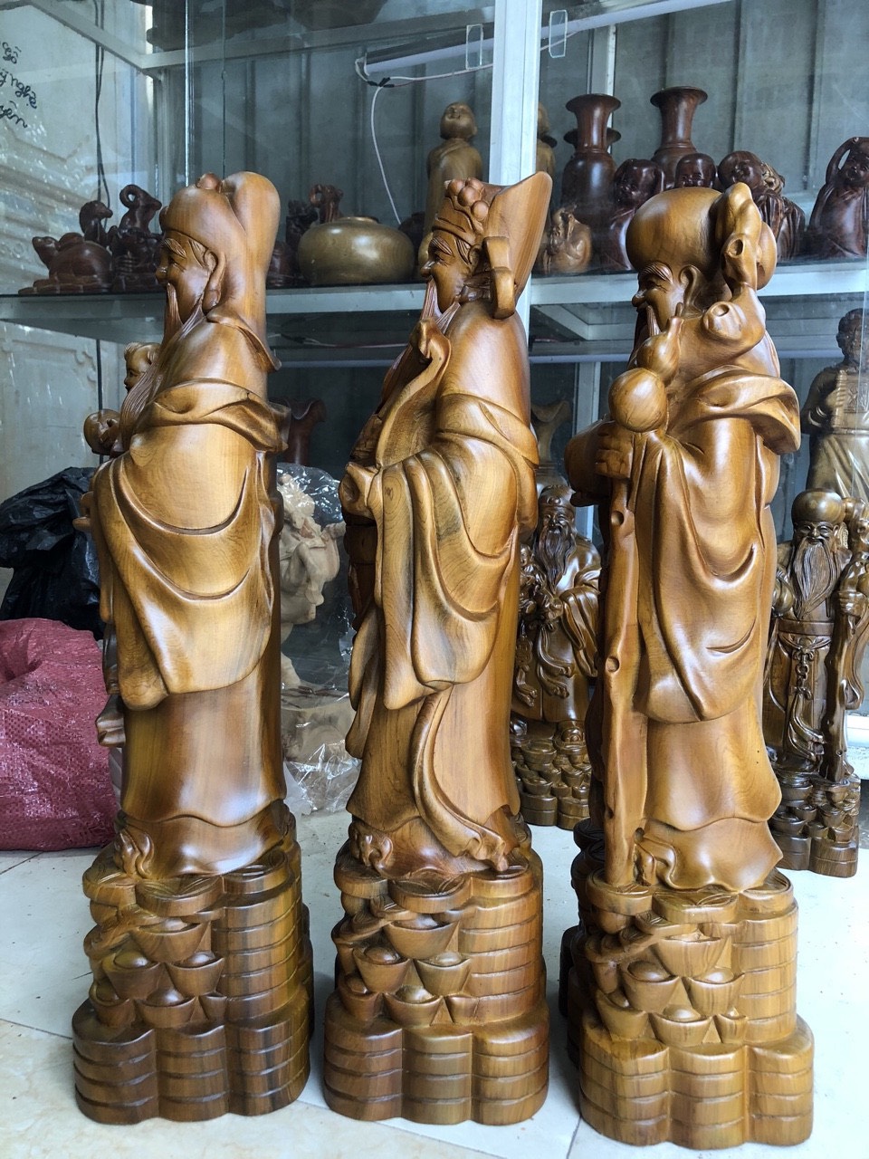 Tượng tam đa phúc lộc thọ gỗ bách xanh mộc châu cao 50| 0389.8899.68