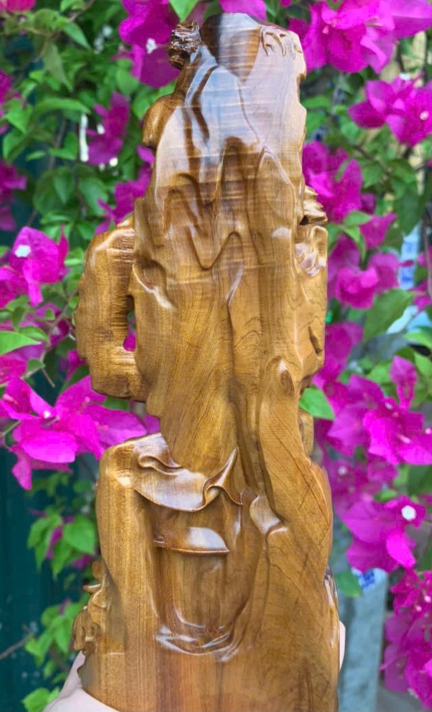 _ Tượng phật quan âm bồ tát nam hải được làm bằng chất liệu gỗ bách xanh liền khối tự nhiên 100% _ kt cao 22x9x7cm _ Tượng được chạm khắc gọt tỉa vô cùng