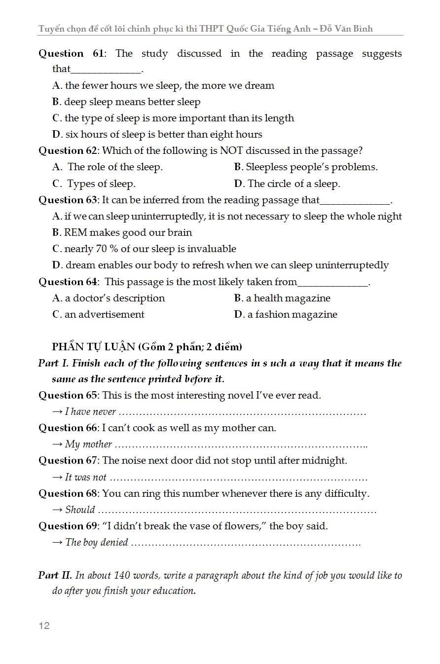 Nhằm giúp người dạy và học môn tiếng Anh có thêm một nguồn tài liệu thiết thực bổ ích và hiệu quả trong quá trình ôn tập thi THPT Quốc Gia môn Tiếng Anh, chúng tôi xin cho ra mắt cuốn “TUYỂN CHỌN ĐỀ CỐT LÕI CHINH PHỤC ĐỀ THI THPT QUỐC GIA TIẾNG ANH”.