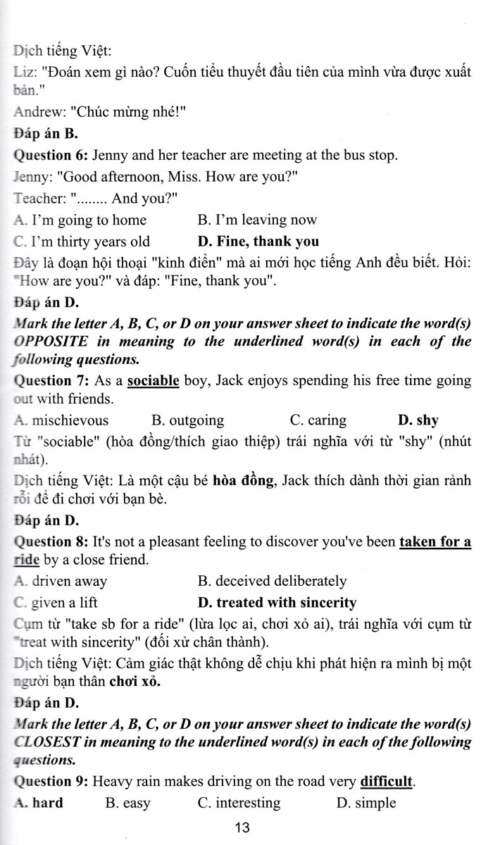 Bên cạnh đó, sách còn tổng hợp đề thi từ 2017 - 2022 có đáp án và lời giải chi tiết. Đây chính là cơ hội để sĩ tử làm bài thi thử đúng cấu trúc đề ra. Luyện đề nhiều còn tăng tốc độ làm bài, cải thiện điểm thi Tiếng Anh THPT Quốc Gia rõ rệt.