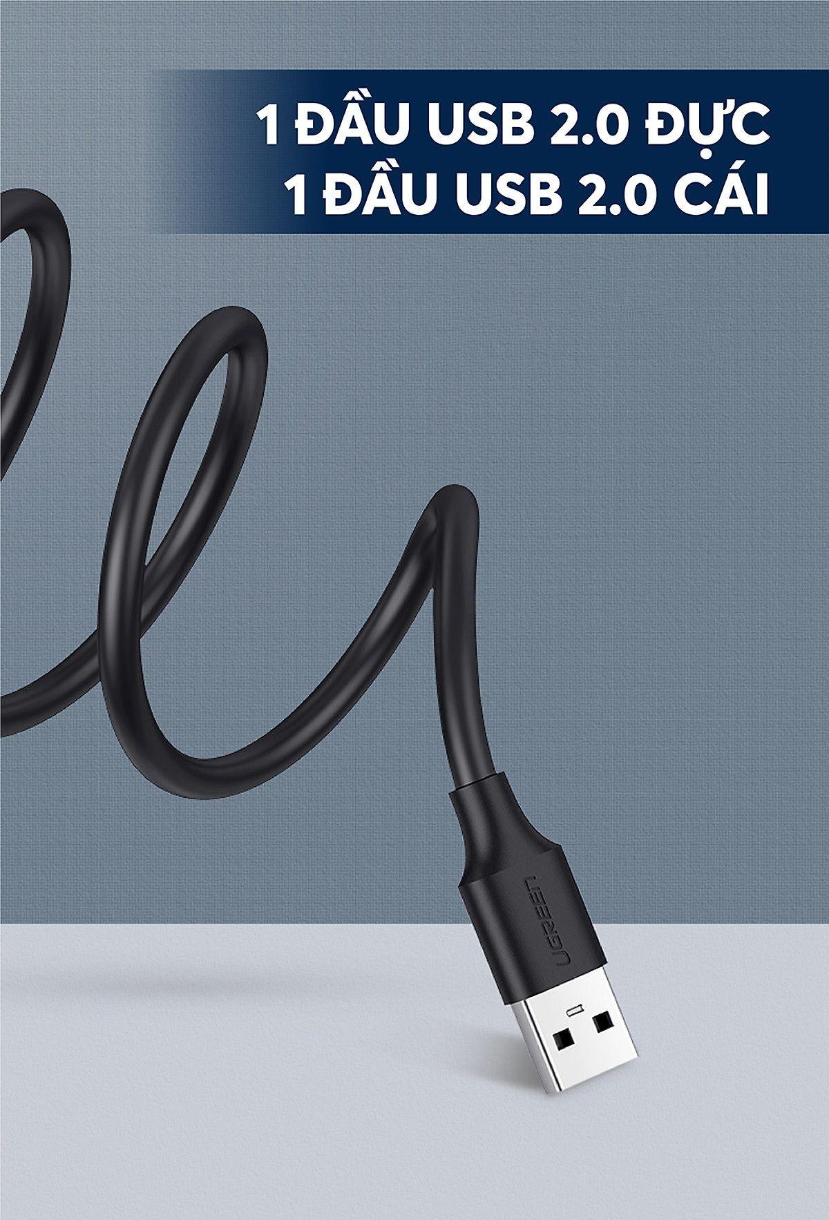 Mua tại Tiktok- Cáp nối dài USB 2.0 gồm 1 đầu đực và 1 đầu cái, giúp tăng chiều dài để kết nối từ máy tính đến các thiết bị sử dụng cổng USB như máy in,