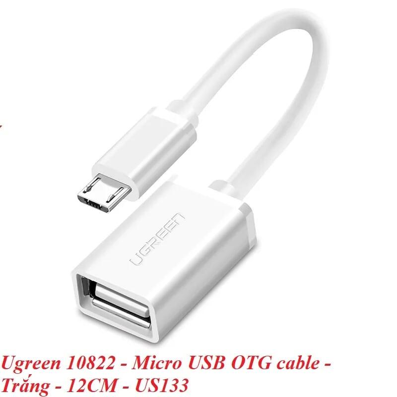 Ugreen 10822 12cm micro usb otg cable trắng us133 1. Length : 12CM 2. Color : White 3. USB Version : 2.0 4. Data Transfer Link Cable USB 2.0 OTG 5. 100 g 6. 15