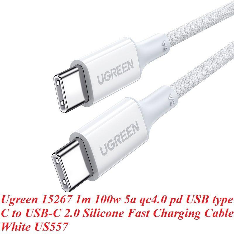 ✨Ugreen UG15267US557TK 1M 100W c-c hỗ trợ QC4.0 5A Cáp sạc nhanh - truyền dữ liệu 2 đầu USB-C dây nhựa Màu Trắng - HÀNG CHÍNH HÃNG