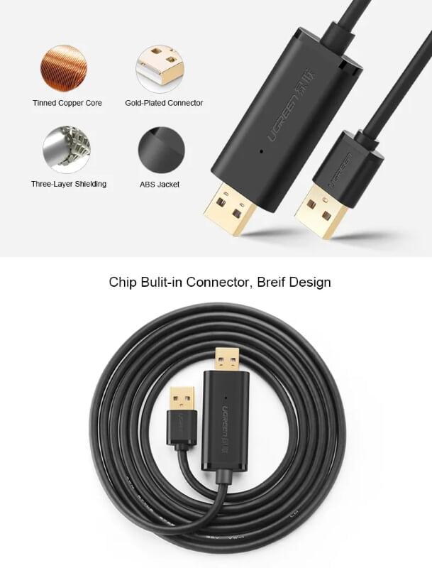 Mua tại TiktokUgreen 20233 2m usb 2.0 data link cable đen us166