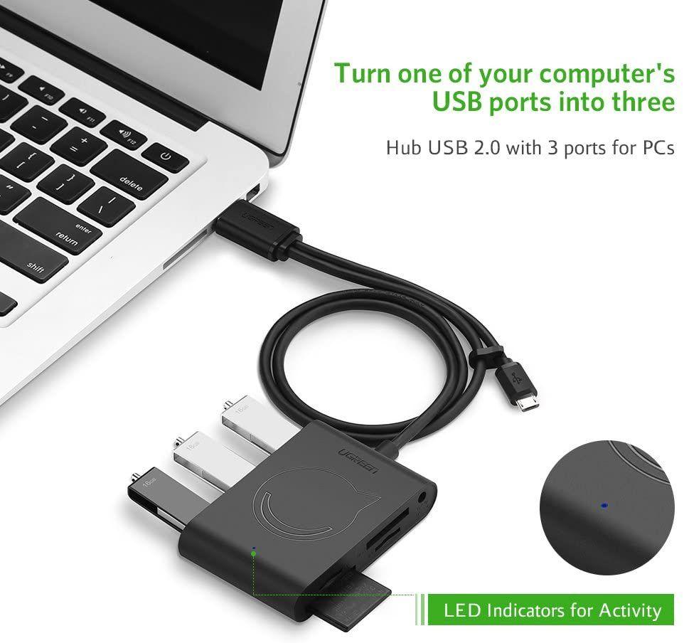 Bộ chia 3 cổng USB 3.0 kèm đọc thẻ nhớ, OTG USB 2.0 Ugreen UG-30343 chính hãng