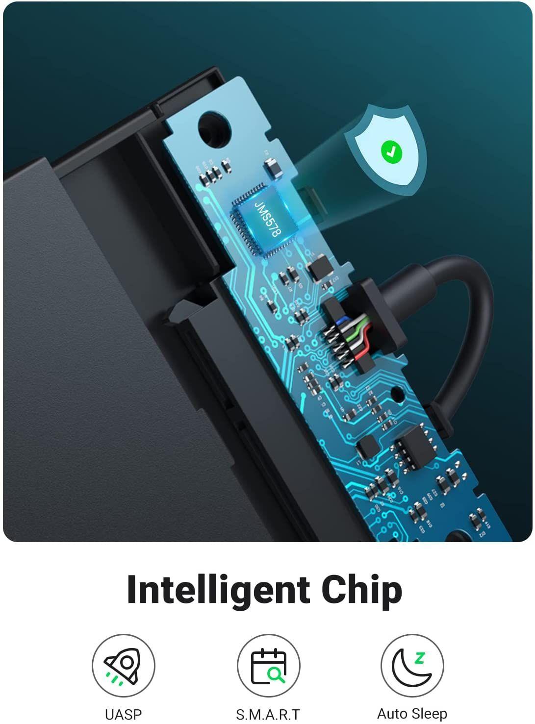 Review Hộp đựng Ổ cứng HDD 2.5 USB 3.0 UGREEN 30847 US221,tốc độ 5Gbps, HDD 6TB dây đúc liền 0,5met