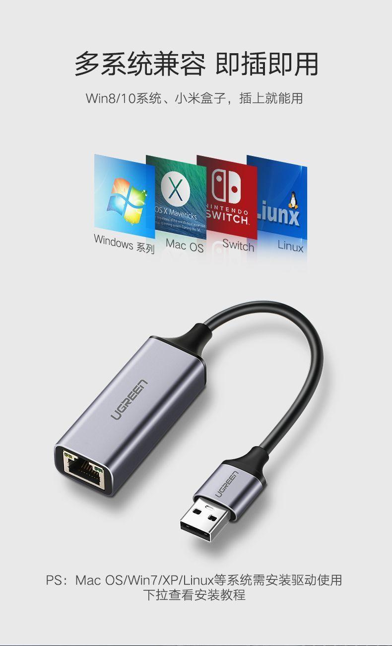 Ugreen 20253 Usb 2.0 To Rj45 Lan 10/100 White Cr110 1. Support 10/100Mbps fast network access; 2. Support IEEE 802.3, 802.3u(10Base-T, 100Base-T) compatible. 3. Compliant with Windows 8/7/Vista/XP, Mac OS X 10.4 and above, Linux