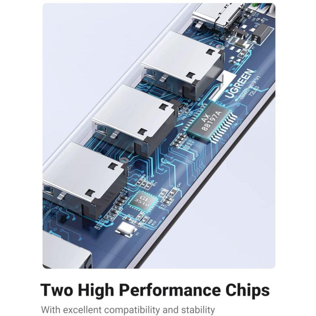 ✨Ugreen UG60554CM475TK 3*USB 3.0 + RJ45 Gigiatbit 20CM Màu Xám Bộ chuyển USB 3.0 5 in 1 sang 3 cổng USB + RJ45 Giagabit + sạc 5v USB-C - HÀNG CHÍNH HÃNG