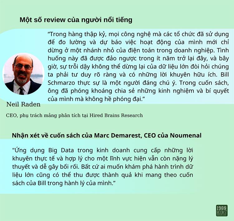 Chương 13: Tổng kết bằng cách xem xét lại một loạt “lời kêu gọi hành động”, để hướng dẫn bạn và tổ chức của bạn bước đi trên hành trình dữ liệu lớn, thông qua việc triển khai các giải pháp và ứng dụng kinh doanh xoay quanh dữ liệu lớn.