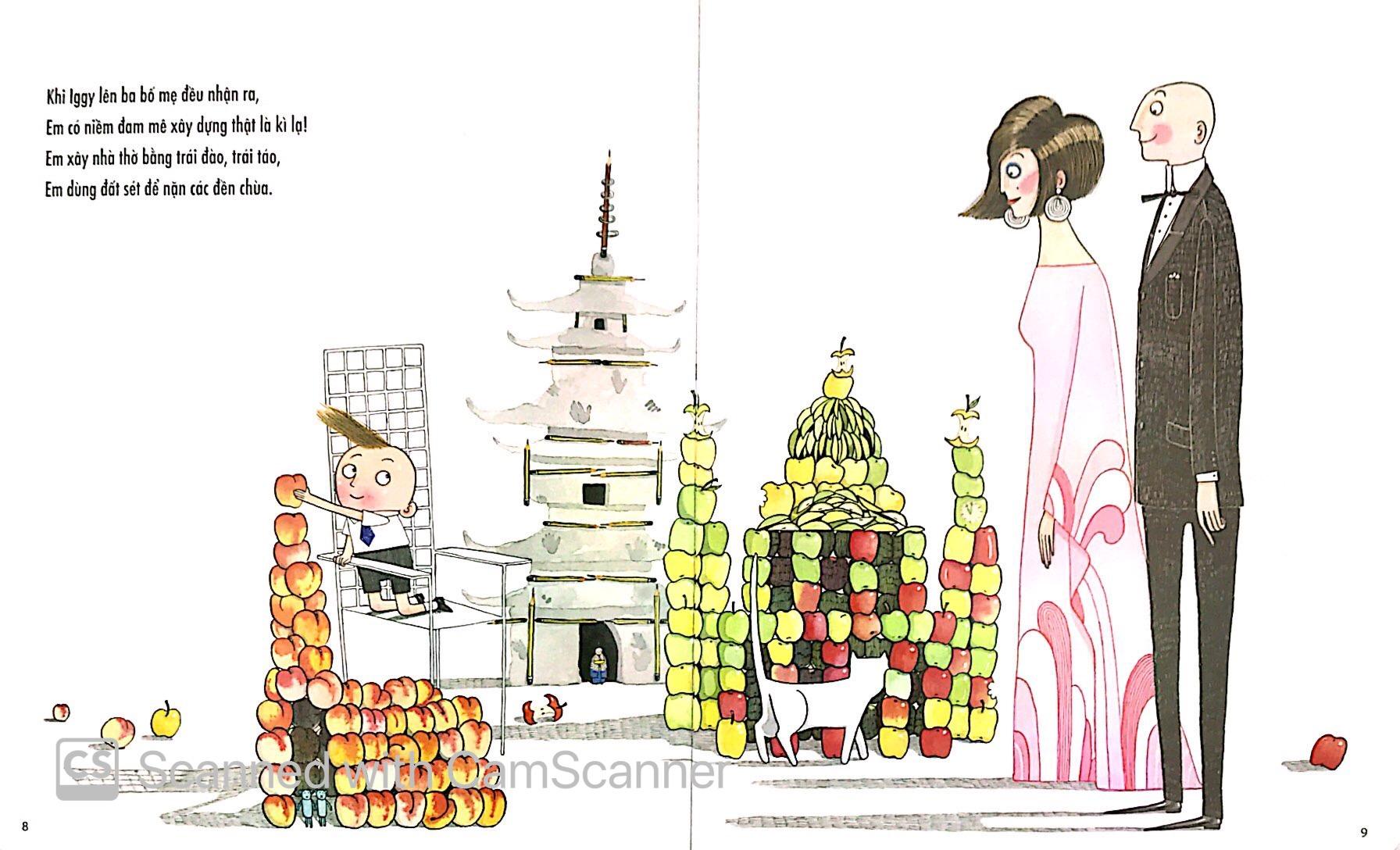 Câu chuyện kể về giấc mơ xây dựng của cậu bé có tên là Iggy Peck. Lúc lên hai tuổi, Iggy Peck đã dựng xây rất oách. Cậu bé dùng tã giấy và keo hồ, xây nên ngọn tháp chỉ trong một tiếng đồng hồ. Mẹ cậu thấy ngọn thấp thật “xịn xò”, nhưng lại thấy đống tã giấy và keo hồ kia “chẳng sạch sẽ chút nào”, liền cất lời mắng mỏ. Thế rồi Iggy Peck liền chạy ra bãi cỏ, lấy cát xây dựng hẳn một chú nhân sư to đùng. Khi lên ba, bố mẹ đều nhận ra cậu bé Iggy Peck có niềm đam mê sâu sắc với xây dựng. Nào là nhà thờ bằng trái đào, trái táo, rồi đền chùa bằng đất sét nặn. Rồi có hôm cậu bé xây cả cổng vòm trời St. Louis bằng bánh rán và bánh mì để làm bố bất ngờ.