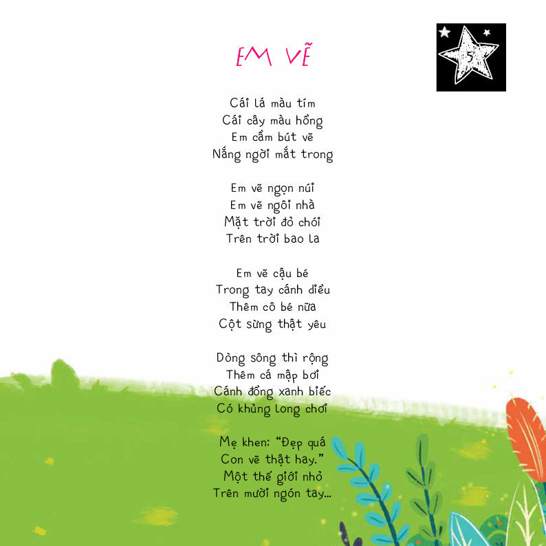 Tập thơ nằm trong Bộ “Vần điệu cho em” của NXB Trẻ - với lời thơ và minh họa đầy sắc màu sinh động (họa sỹ tham gia vẽ: Phan Hiền) – chia sẻ mong muốn cùng độc giả lan tỏa thông điệp, dựa trên cái hay cái đẹp của ngôn ngữ thơ ca, để gửi đến trẻ em những điều tinh tế nhất của cuộc sống này.