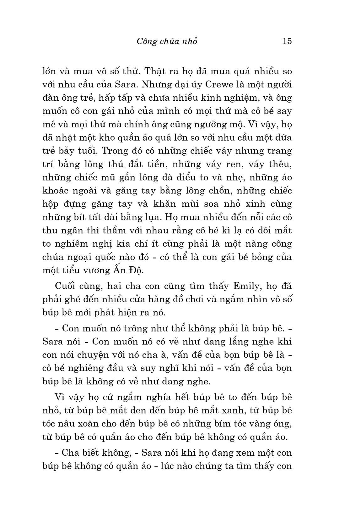 Từ khi ra đời, câu chuyện Công chúa nhỏ đậm màu sắc cổ tích, ca ngợi lòng tự trọng, tình yêu thương và lung linh sắc màu tưởng tượng luôn được nhiều thế hệ thiếu nhi yêu thích. Cuốn sách đã nhiều lần được chuyển thành phim điện ảnh, truyền hình và nhạc kịch.