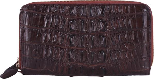 Ví/Bóp nữ da bò Huy Hoàng vân cá sấu nhiều ngăn màu nâu 3134