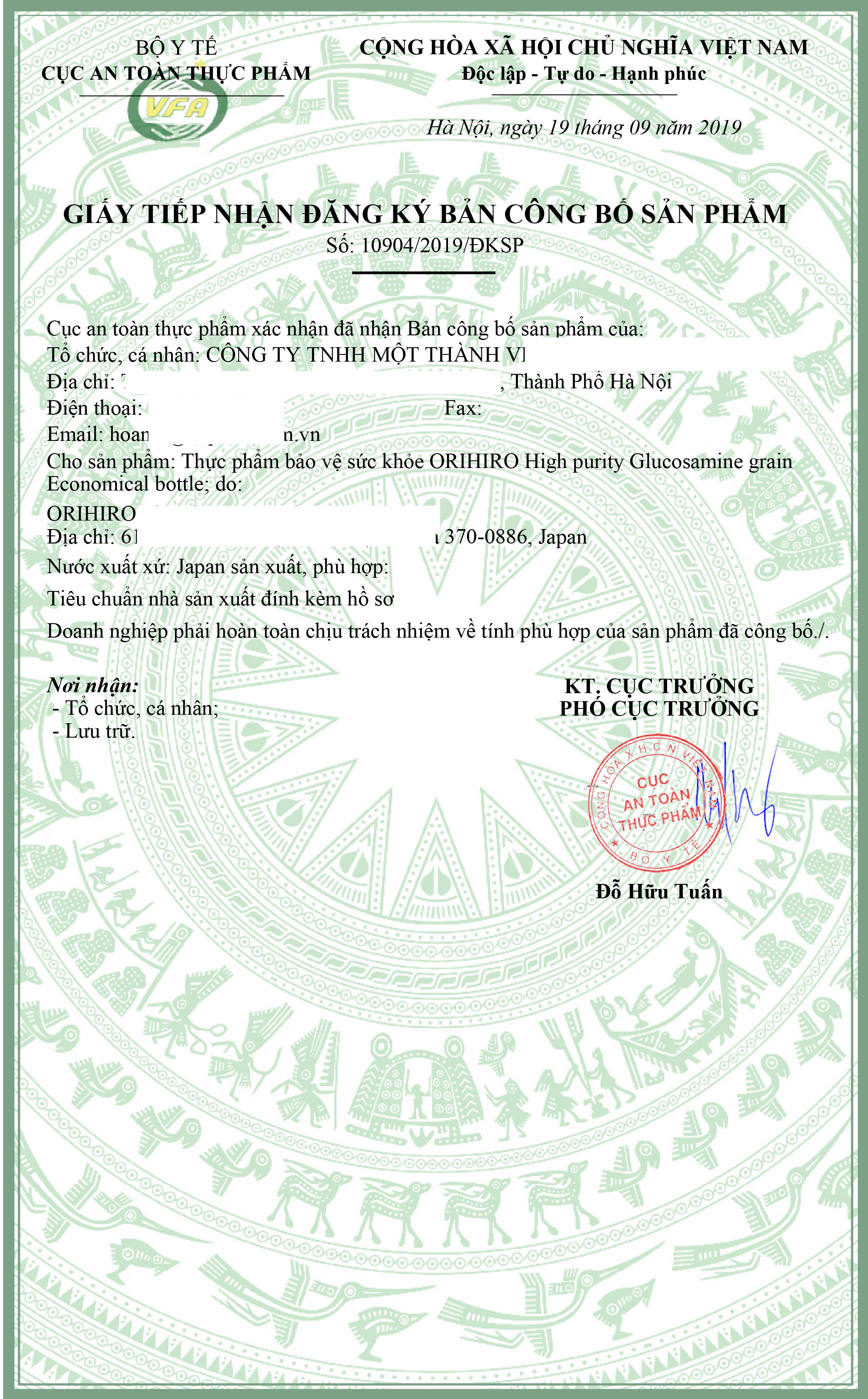 - Sản phẩm chính hãng sẽ có tem chống hàng giả từ hãng orihiro, tem phụ dán trên hộp. Date in rõ ràng, không tẩy xóa, dán đè THÀNH PHẦN CỦA GLUCOSAMINE ORIHIRO: Glucosamine hydrochloride, Phức hợp protein Mucopolysaccharide (chứa chondroitin), chất phân giải Collagen lên men, chiết xuất mầm đậu nành, Axit hyaluronic trọng lượng phân tử thấp, chiết xuất sụn gà (chứa collagen loại II), Canxi, Magie, kẽm, vitamin B1, vitamin B6, vitamin D, vitamin K, axit Folic. CÔNG DỤNG CỦA GLUCOSAMINE ORIHIRO: