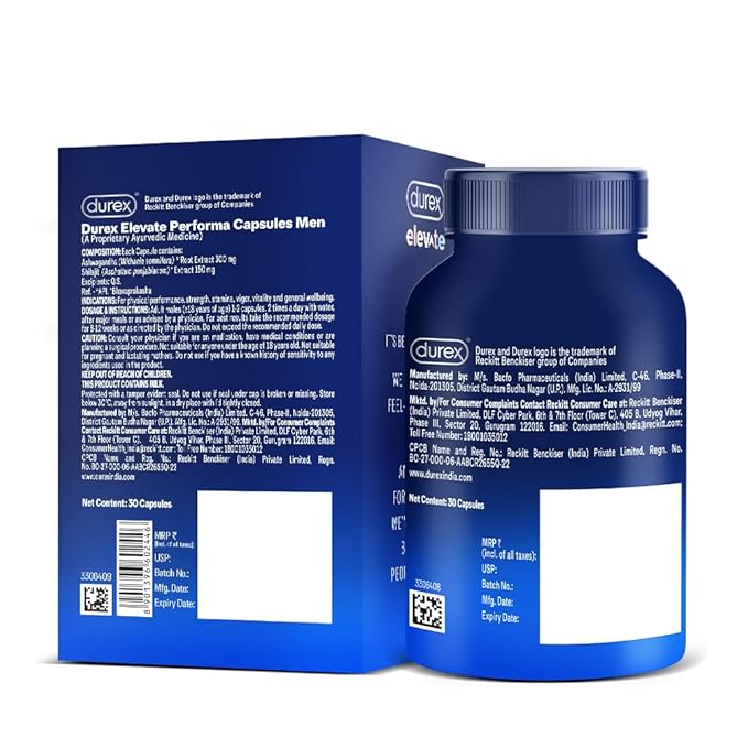Viên Uống Tăng Cường Sinh Lực Cho Nam Giới Durex Elevate Performa Viên Uống Tăng Cường Sinh Lực Cho Nam Giới Durex Elevate Performa được sản xuất bởi Bacfo Pharmaceuticals (India) Limited, sản phẩm này mang