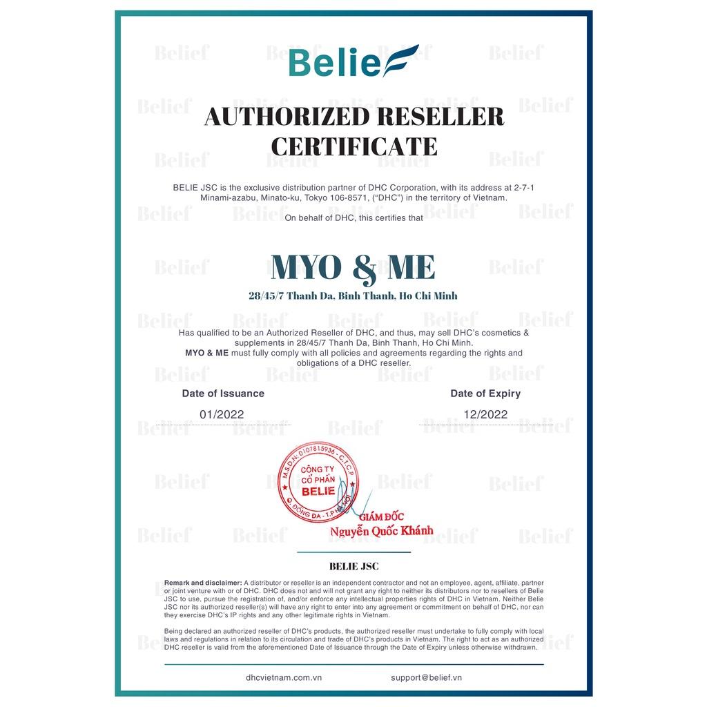 Thực phẩm này không phải là thuốc, không có tác dụng thay thế thuốc chữa bệnh Hãng SX: DHC Nhật Bản Quy cách: Gói 30/90 ngày Liều lượng dùng: Mỗi ngày uống 1 viên sau