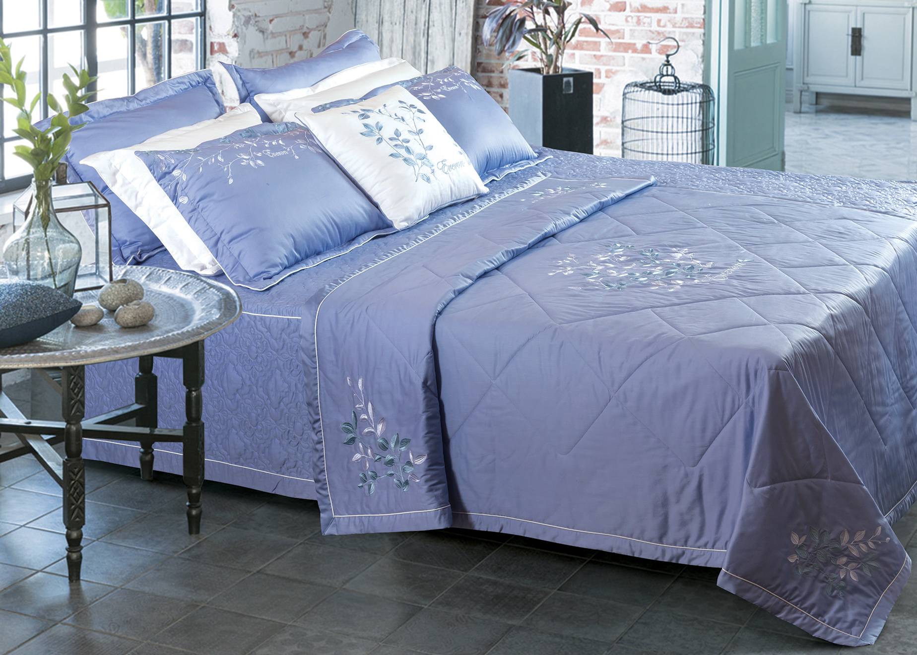 Mua tại TiktokMã sản phẩm: ESC19001 thuộc bộ sưu tập 2019 Chất liệu: Cotton satin Xuất xứ : Việt Nam Mô tả: Lấy ý tưởng từ cành lá trong mùa đông thêu trên nền vải xanh tím sẽ giúp cho phòng ngủ của bạn cảm giác trong lành và bình yên .