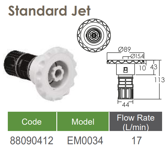 Mua tại TiktokMắt massage Emaux EM0031 + Lõi EM0034 Mắt trả nước Emaux EM0031 + Lõi EM0034 Model: EM0031, EM0034 Lưu lượng 2.2 m3/h Khớp nối: 50mm (nước), 34mm (khí) Hãng sản xuất: Emaux – China Mắt