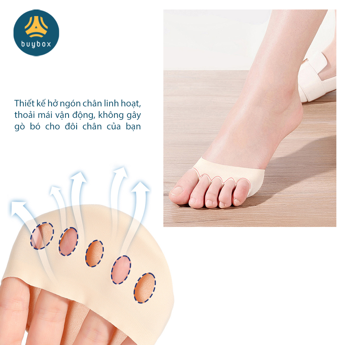 ✨Vớ thiết kế hở ngón, màu sắc tinh tế, kết hợp đệm êm chân, giảm tình trạng thốn bàn chân hiệu quả - BuyBox - BBPK339