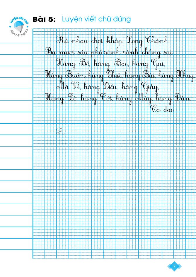 Trong từng bài, Học sinh sẽ được Luyện viết Chữ hoa, Chữ đứng và Chữ nghiêng. Nội dung viết là những câu ca dao, tục ngữ; những đoạn thơ, đoạn văn đặc sắc… vừa giúp các con Luyện chữ, vừa bồi đắp cho các con vốn kiến thức văn học để thêm yêu tiếng Việt.