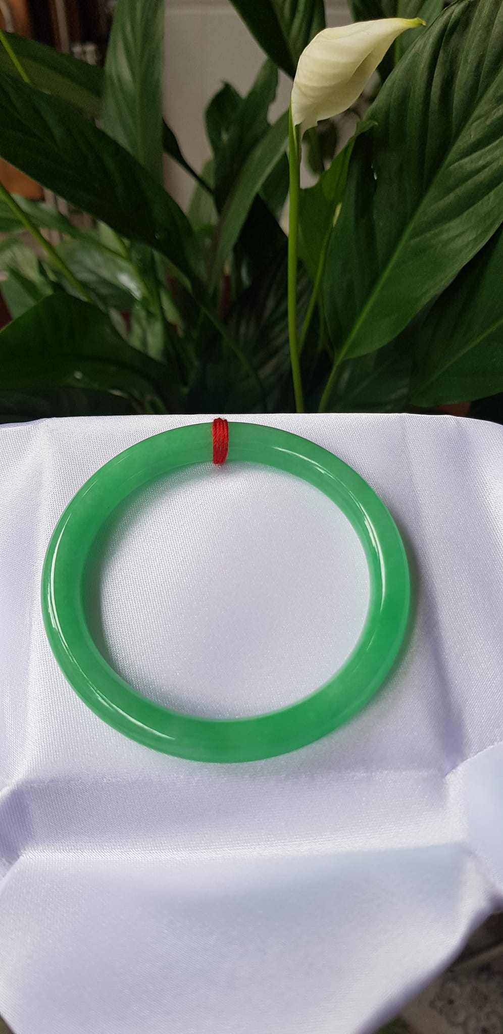 CHIẾC VÒNG TAY PHONG THỦY ĐÁ CẨM THẠCH LÝ ĐẸP K 54MM x DẦY 8MM MÀU XANH LÁ ĐỀU BÓNG ĐẸP NỮ MỆNH HỎA MỘC NỮ CÂN NẶNG 53kg đến 64kg Đeo Đẹp Tay ạ
