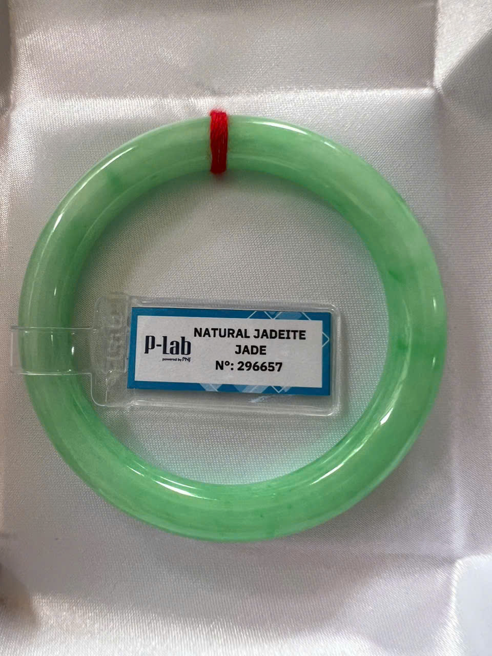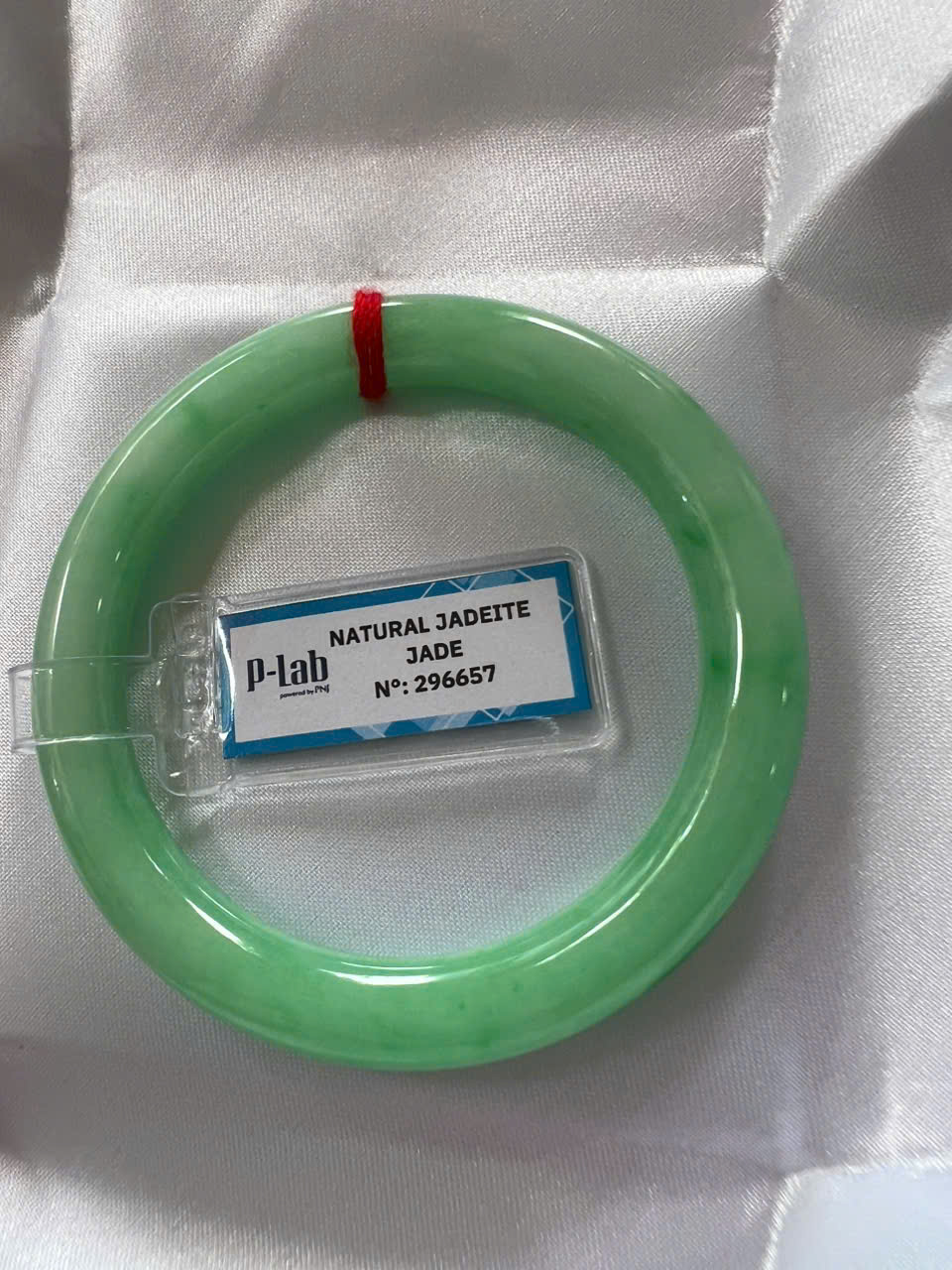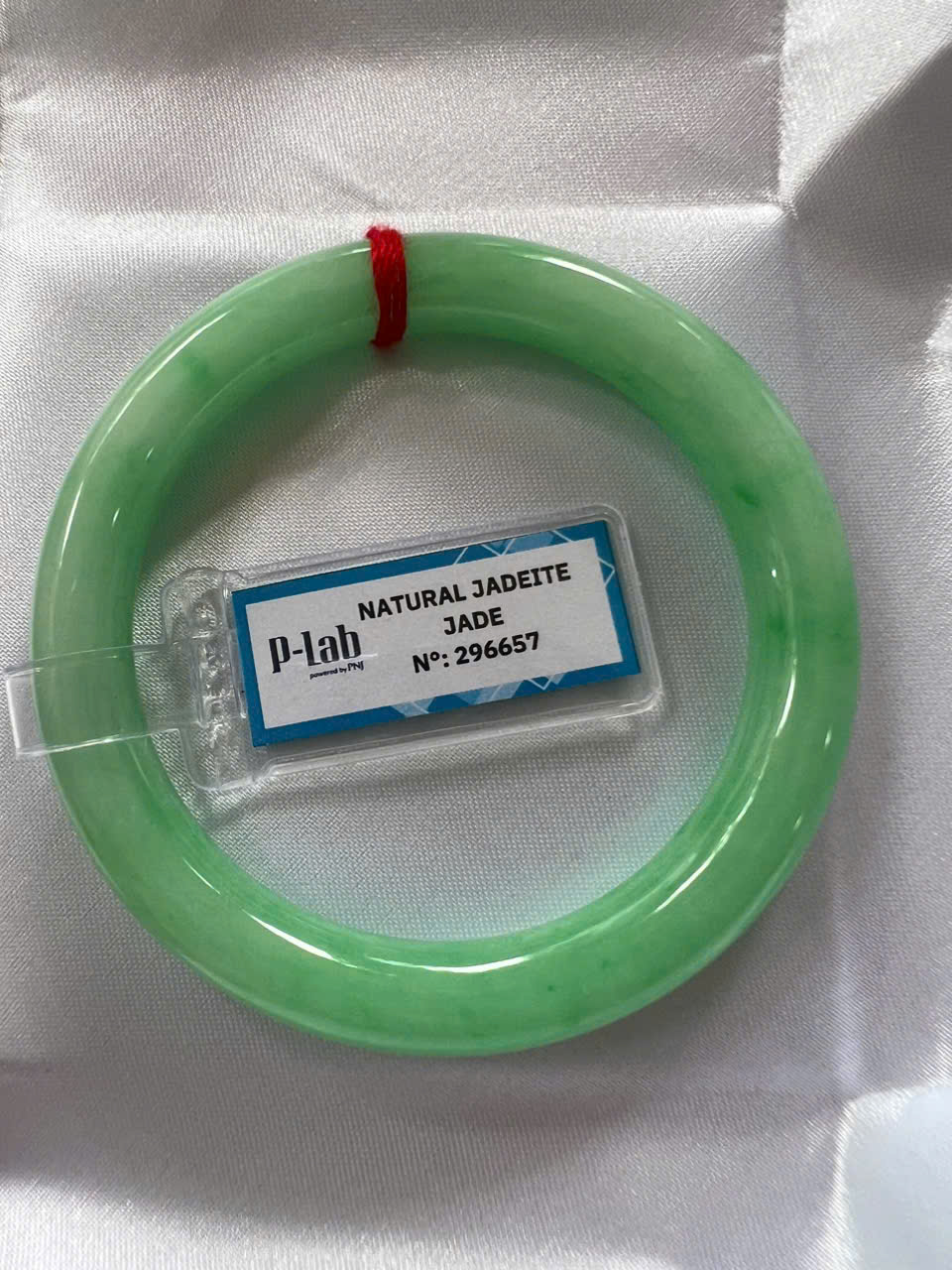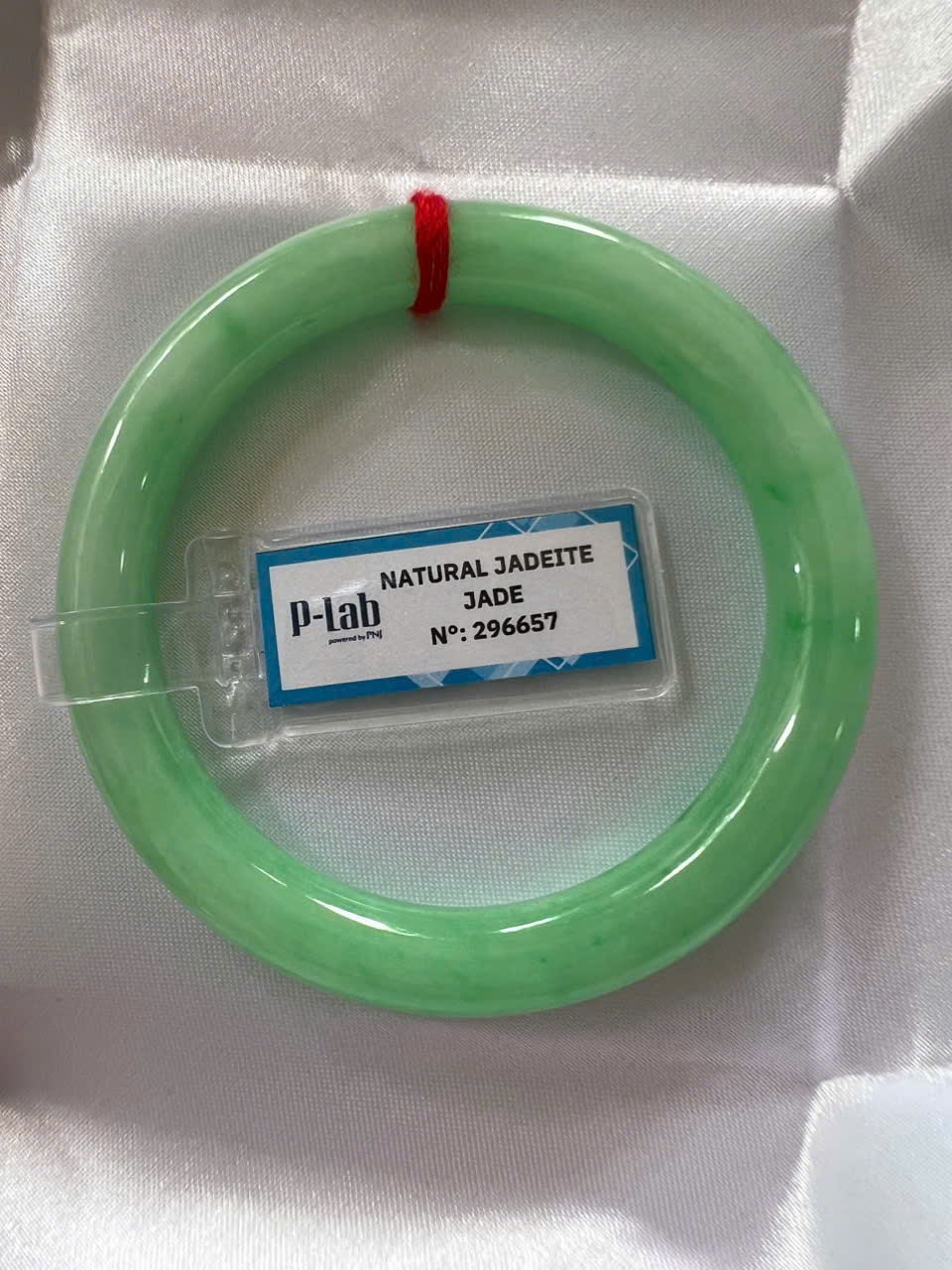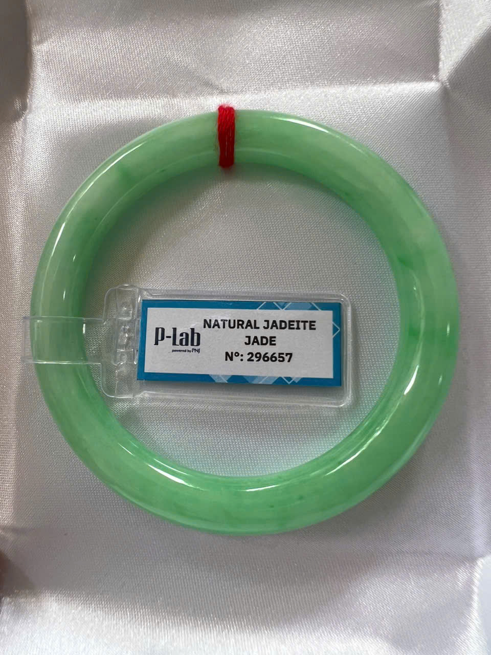 Đặc điểm nổi bật:Vòng cẩm thạch tự nhiên được kiểm định P Lab No 296657. Thiết kế đẹp, sang trọng, phù hợp cho nữ từ 50kg đến 56kg ạ