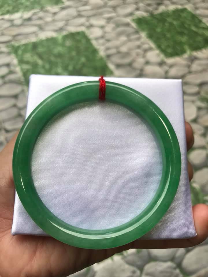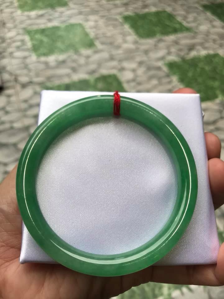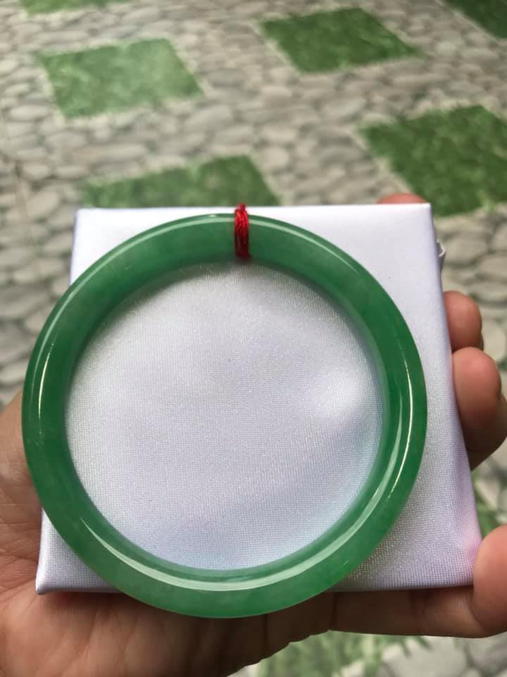 Vòng cẩm thạch Đ Lý 52mm x dầy 7,8mm màu xanh lá tươi hợp Nữ mệnh Mộc mệnh Hỏa 52kg - 56kg đeo ạ