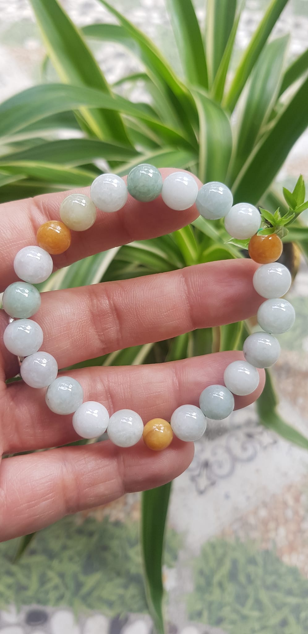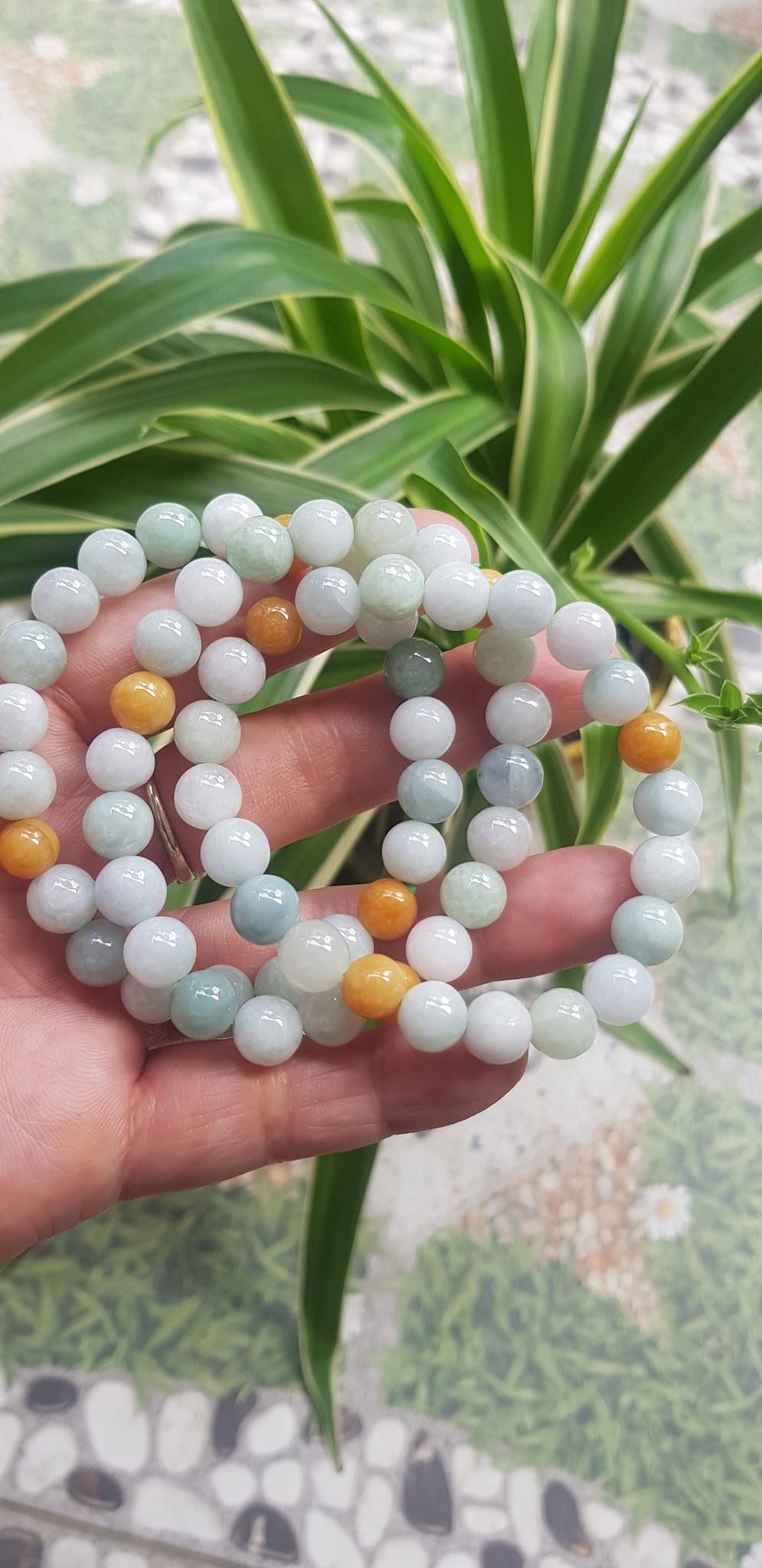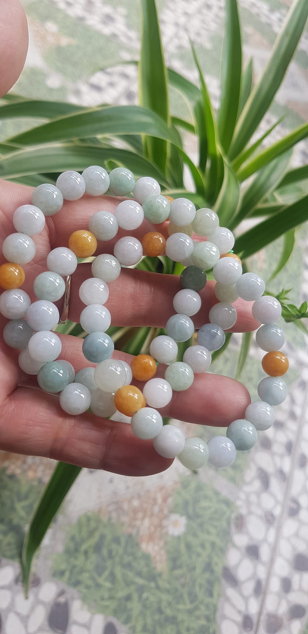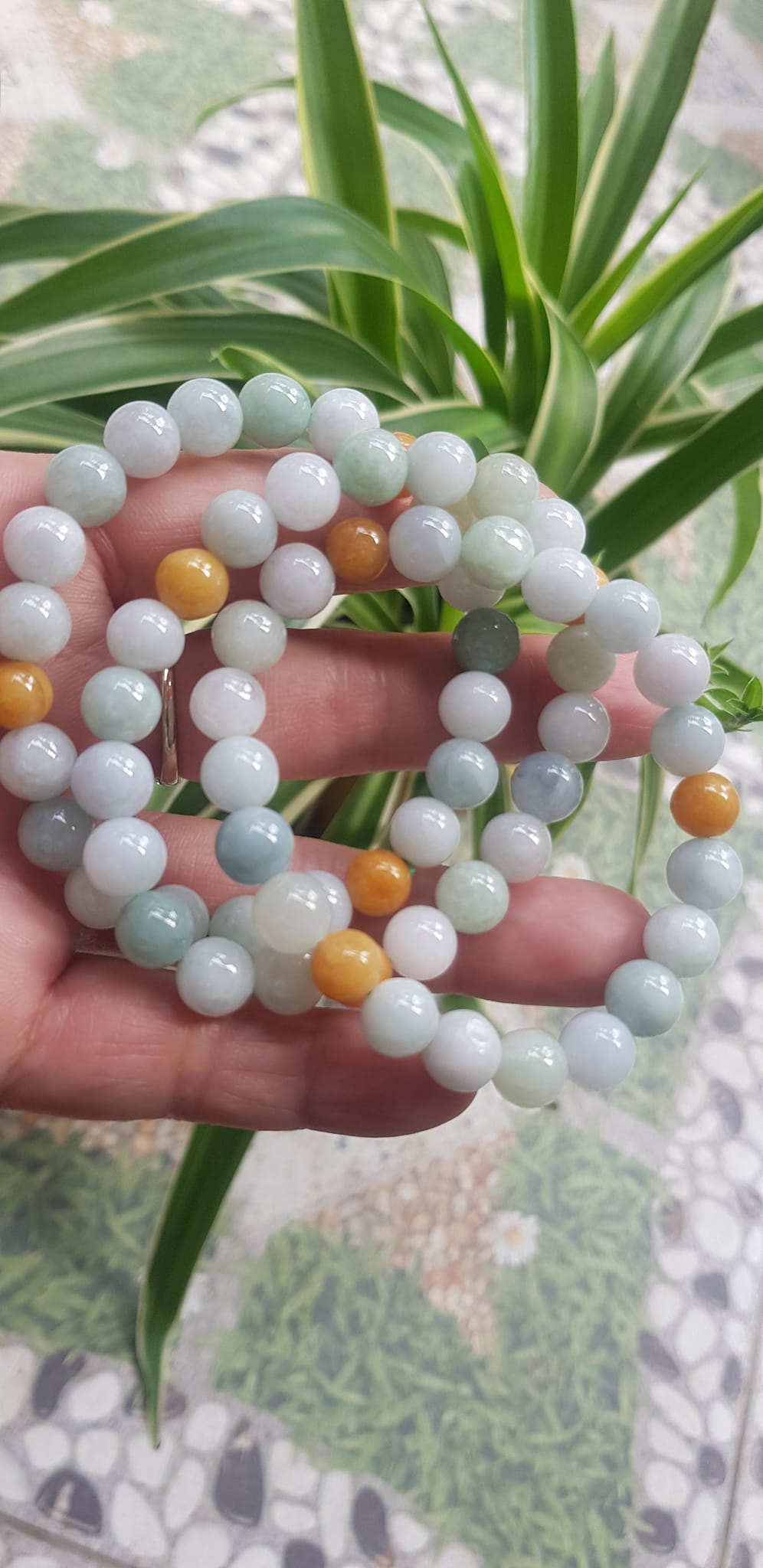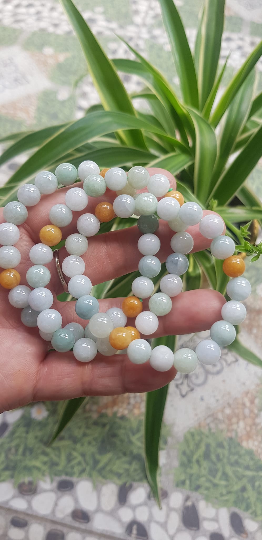 Vòng chuỗi đá Cẩm Thạch tự nhiên trắng huyết tam tài 8mm bóng đẹp màu trắng bóng xanh vàng Sunny Q8