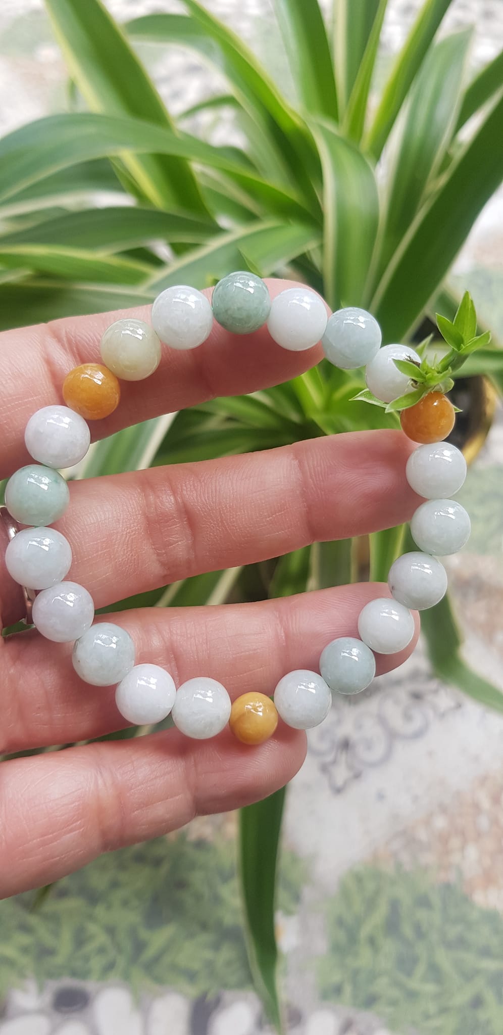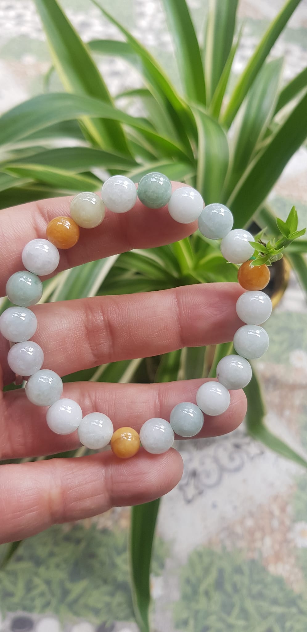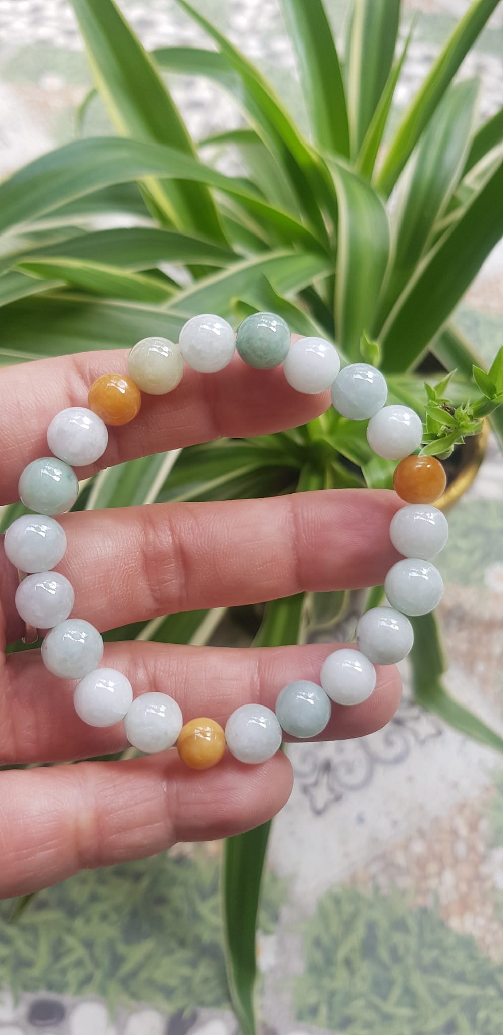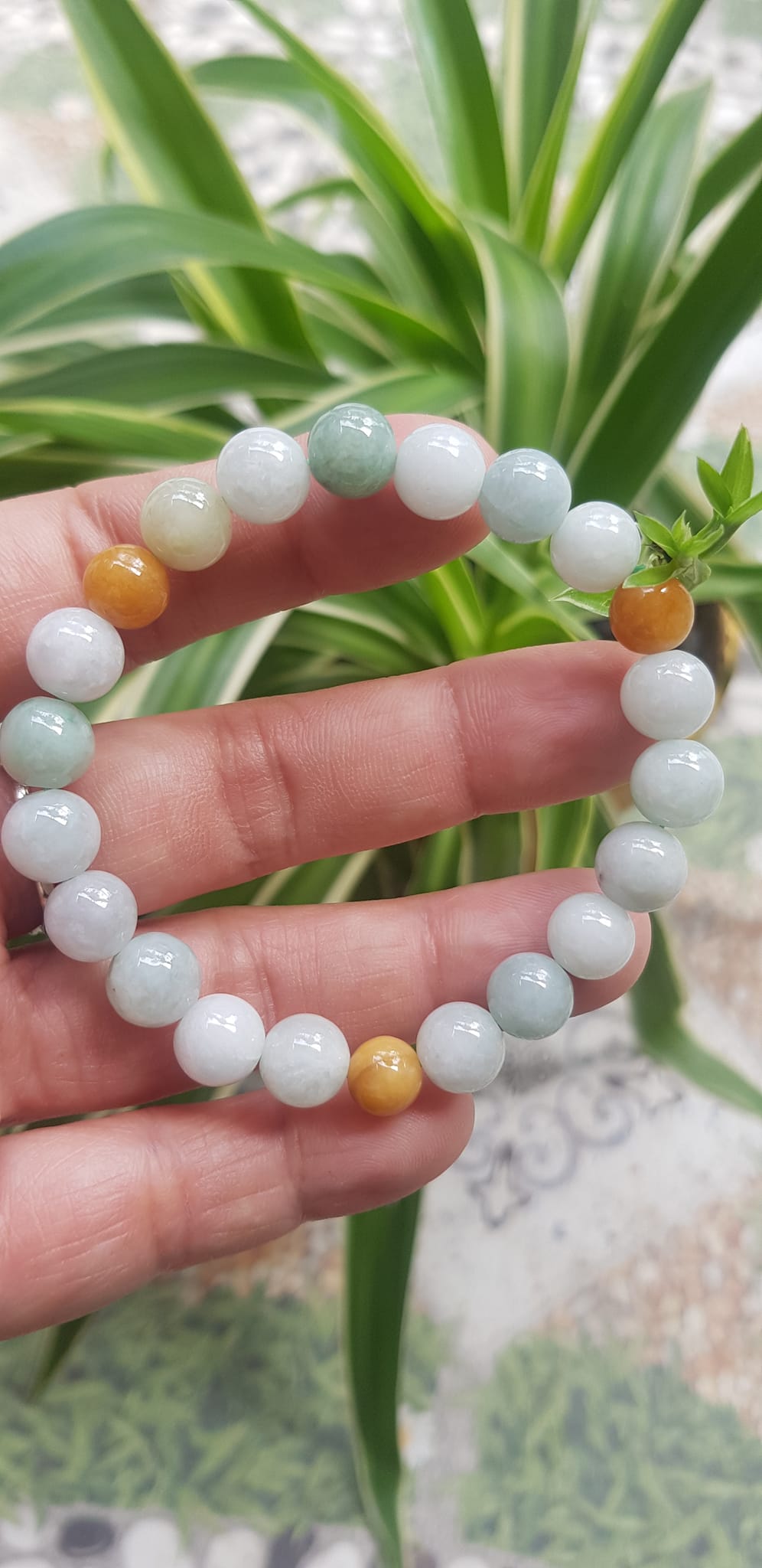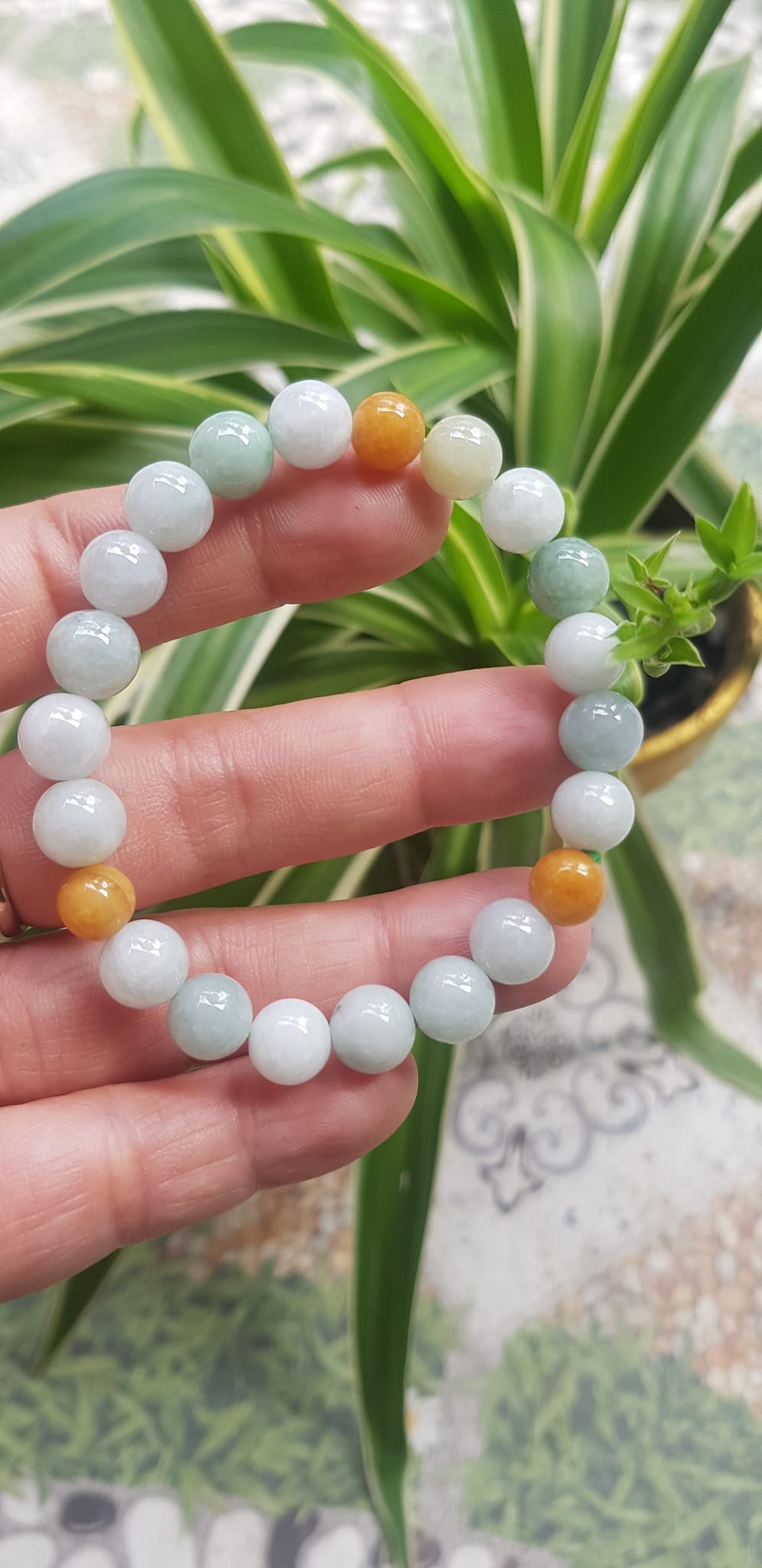 Vòng chuỗi đá Cẩm Thạch tự nhiên trắng huyết tam tài 8mm bóng đẹp màu trắng bóng xanh vàng Sunny Q8