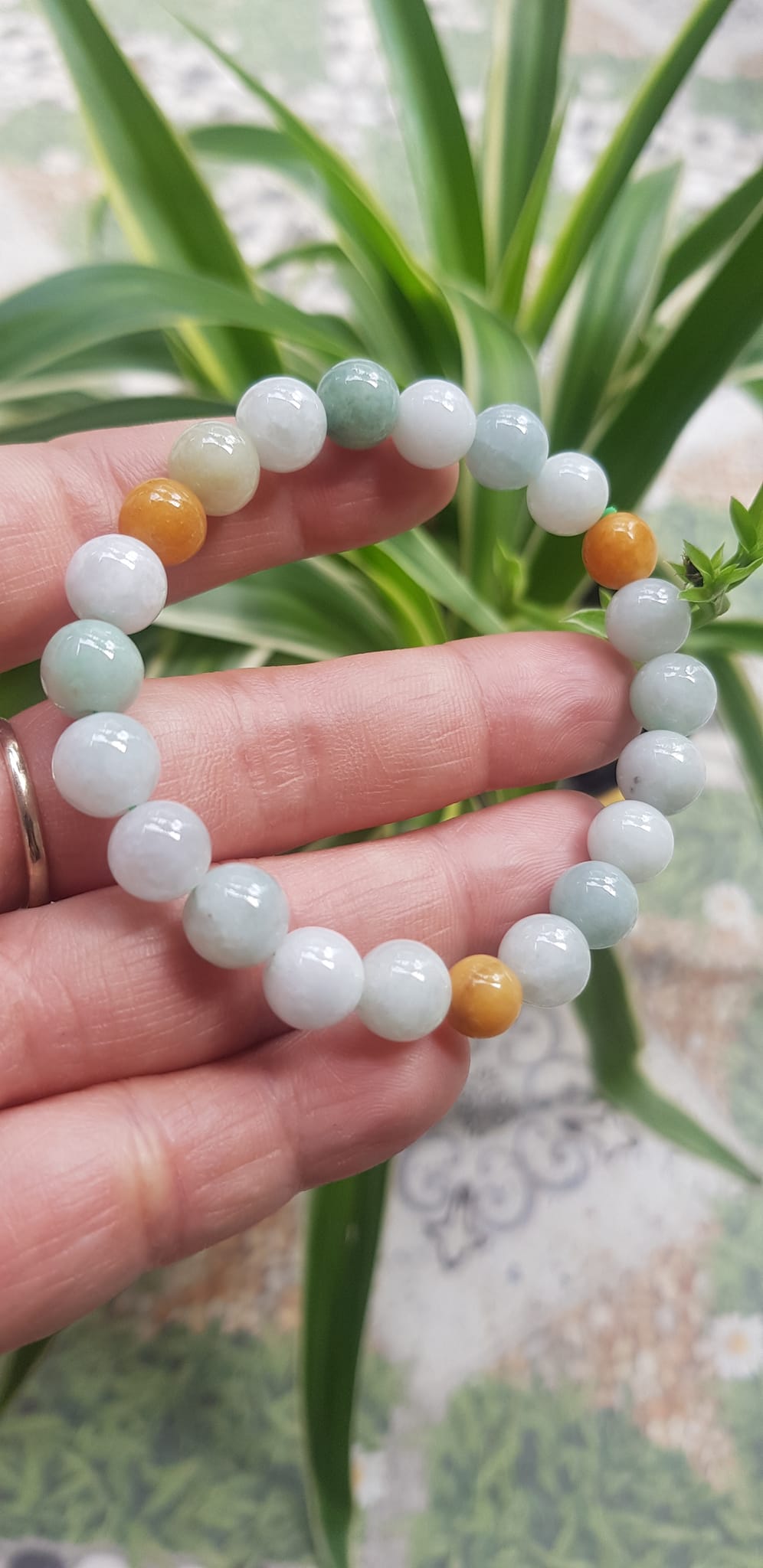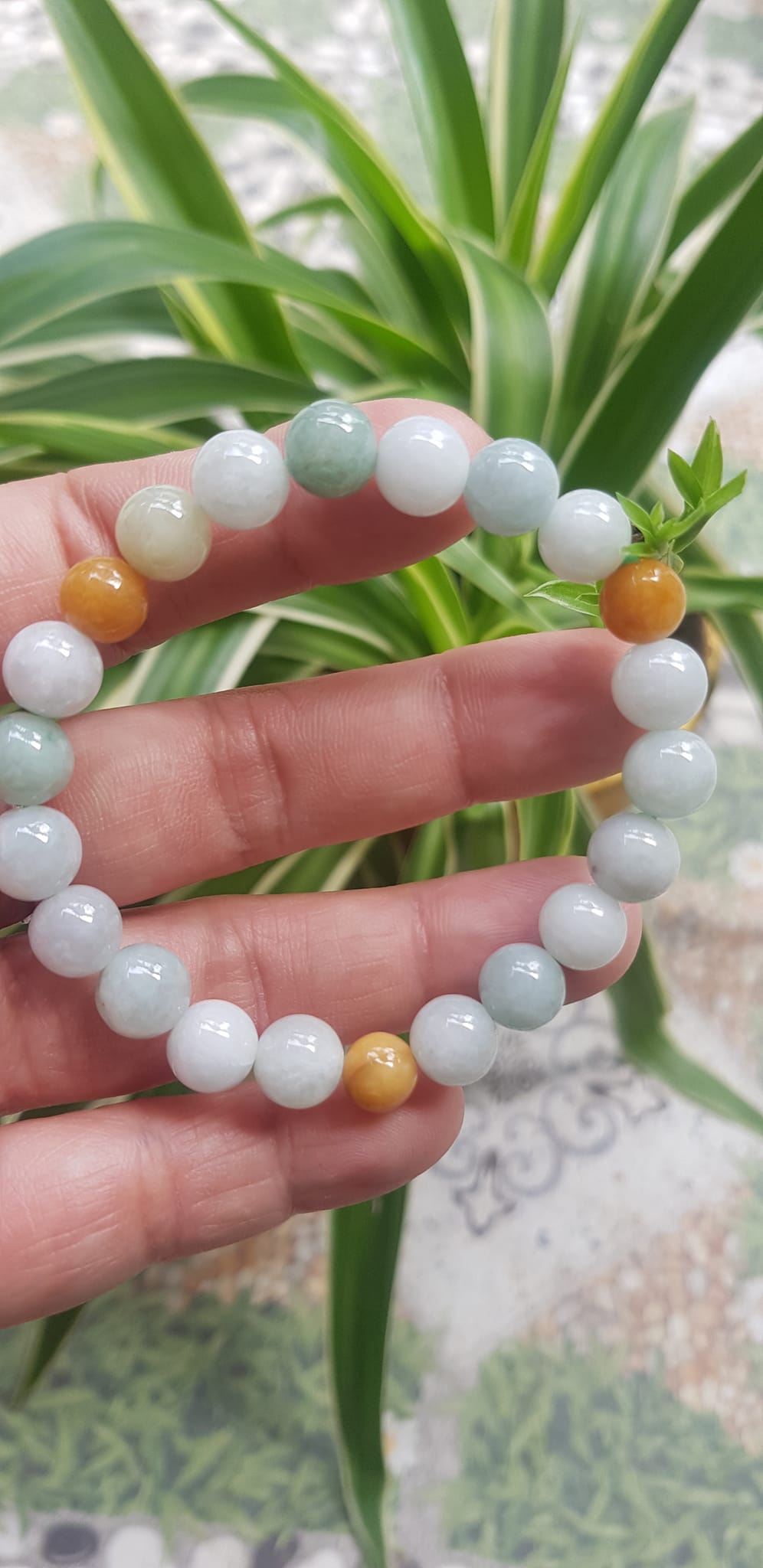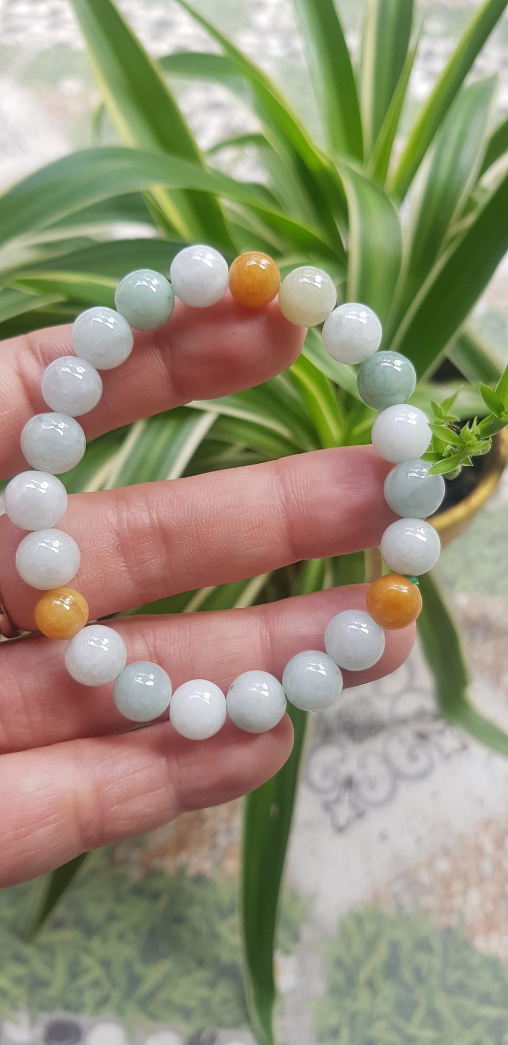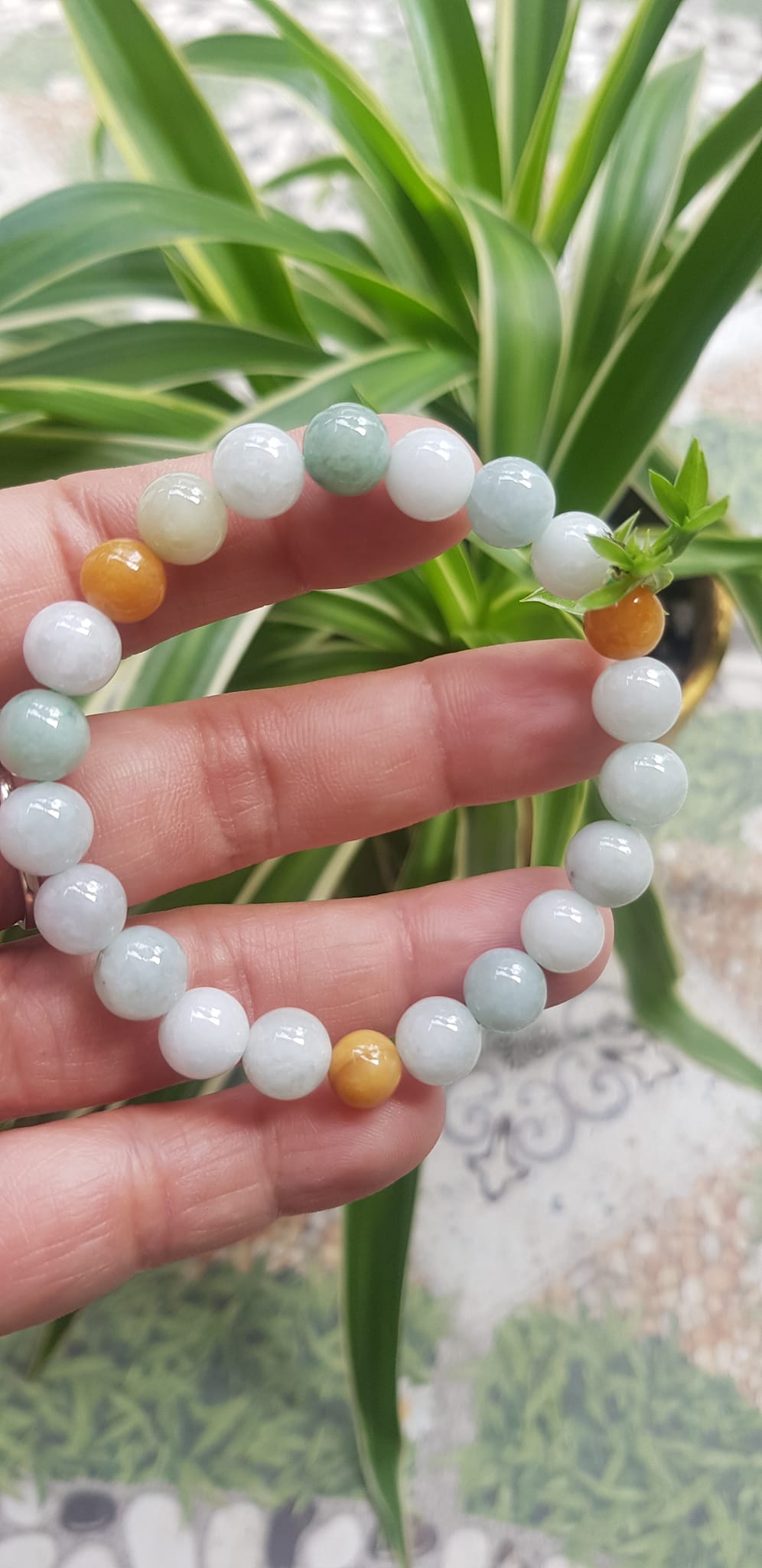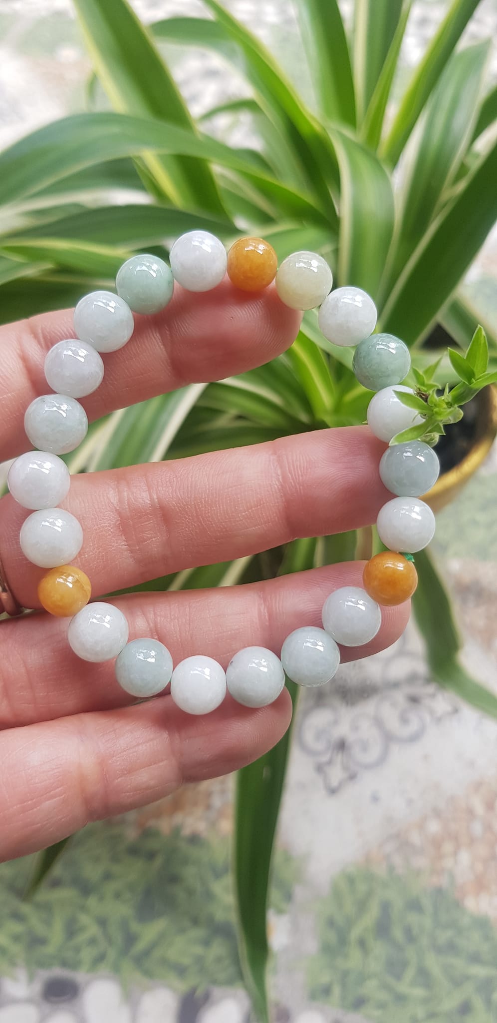 Vòng chuỗi đá Cẩm Thạch tự nhiên trắng huyết tam tài 8mm bóng đẹp màu trắng bóng xanh vàng Sunny Q8