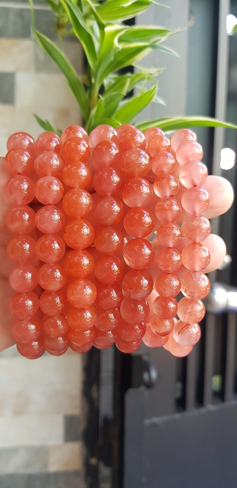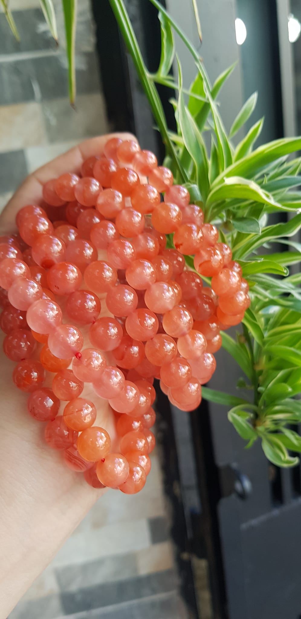 Vòng đeo tay nữ chuỗi mới đá mã não hồng cam bóng mượt đẹp Size vòng hạt 10mm Nam nữ mệnh hỏa mệnh thổ đeo ạ