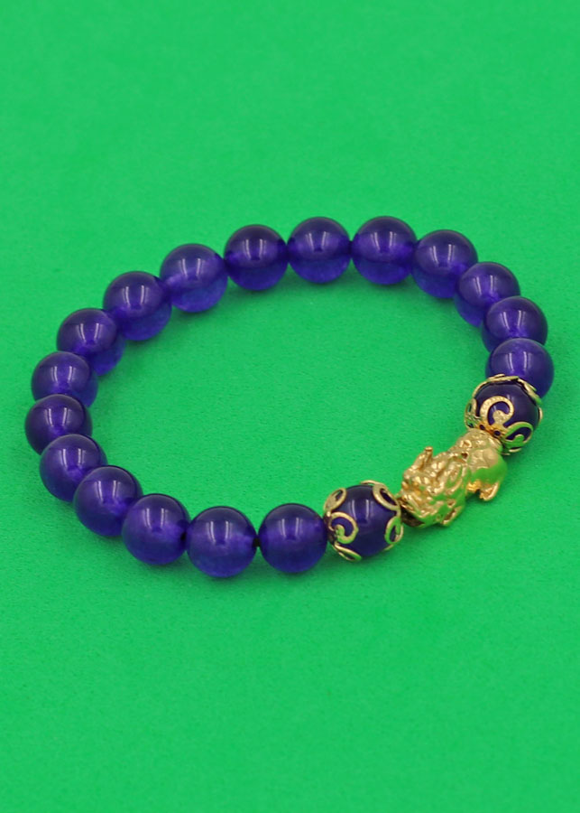 ✨Vòng đeo tay Thạch Anh Tím 8 ly - cẩn Tỳ Hưu Phong Thủy inox vàng VTAITHHKV8 - hợp mệnh Hỏa, mệnh Thổ